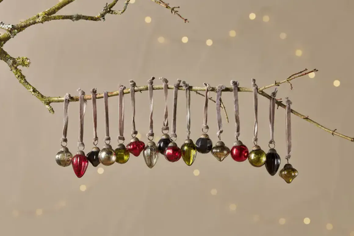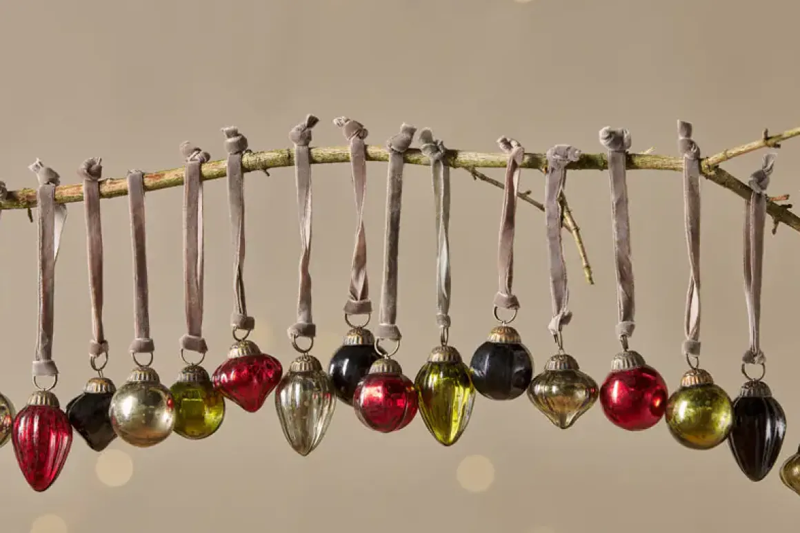 Inspired by traditional sweet jars, these elegant glass pots are filled with a selection of traditional glass baubles in a mix of festive colours and shapes. Easy to store and keep safe year after year. Both the jar and decorations are made from recycled glass. Each set includes sixteen baubles and velvet hanging ties.