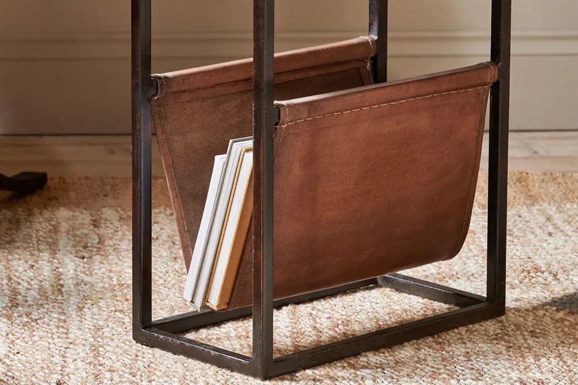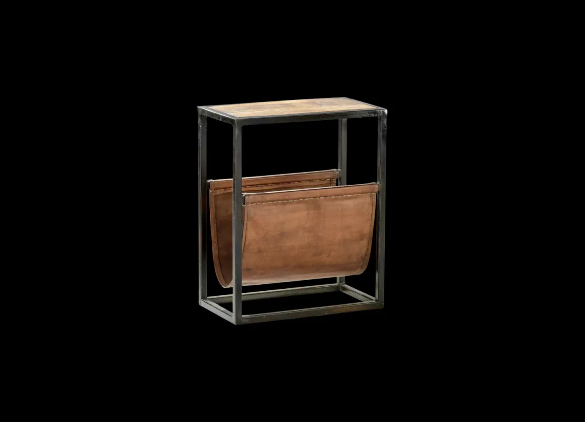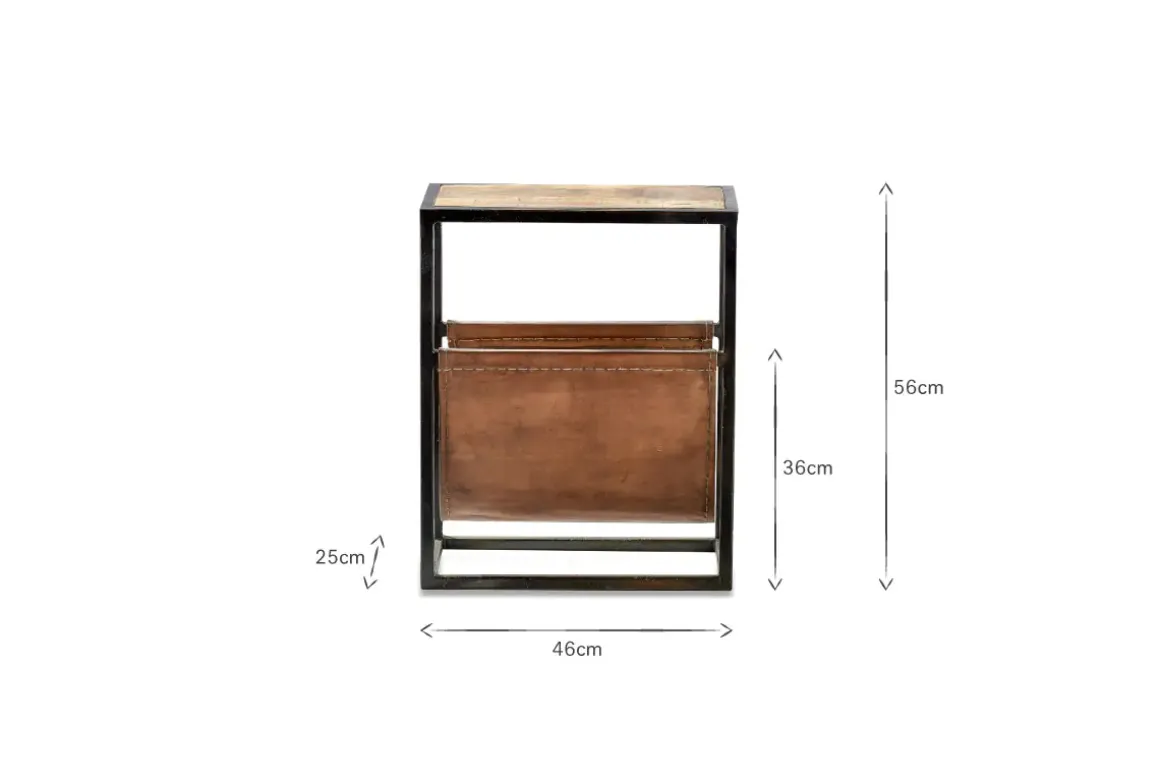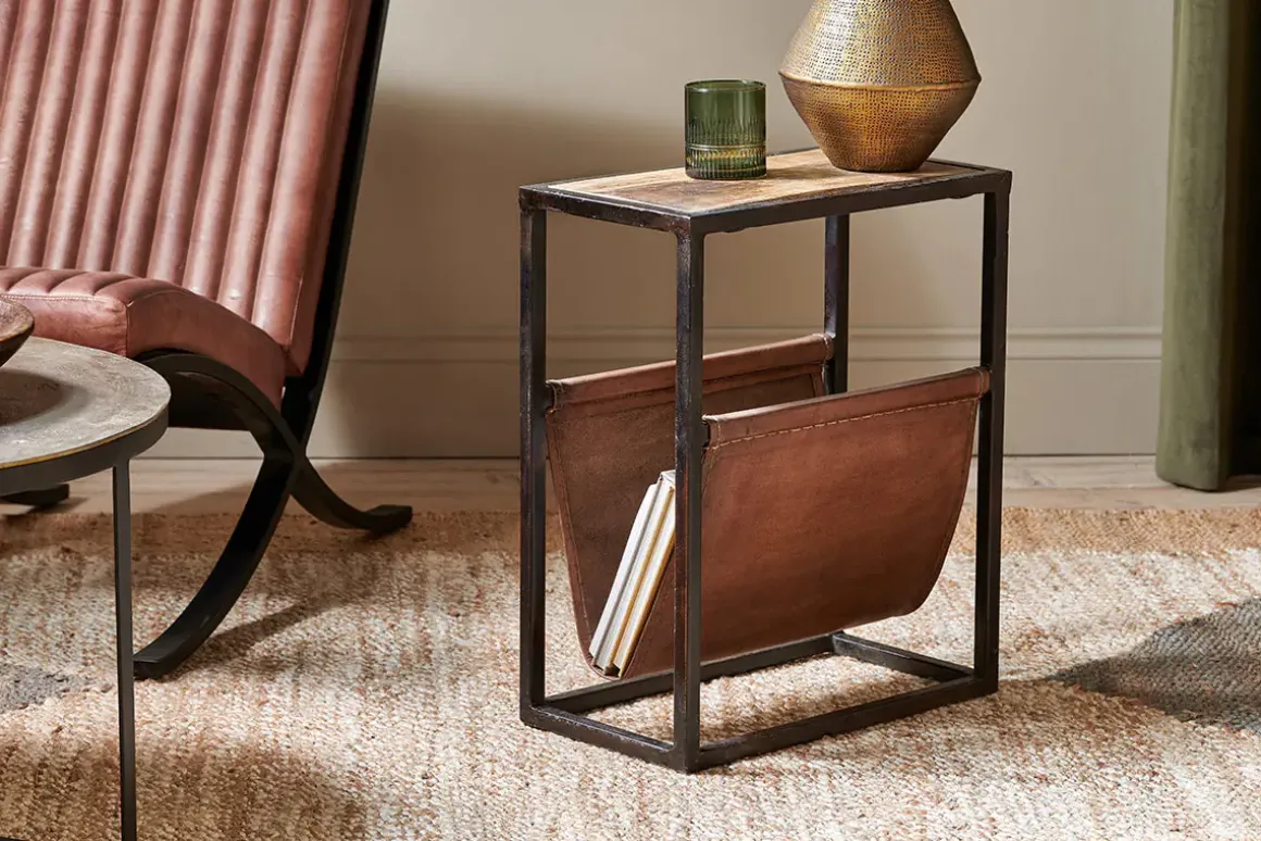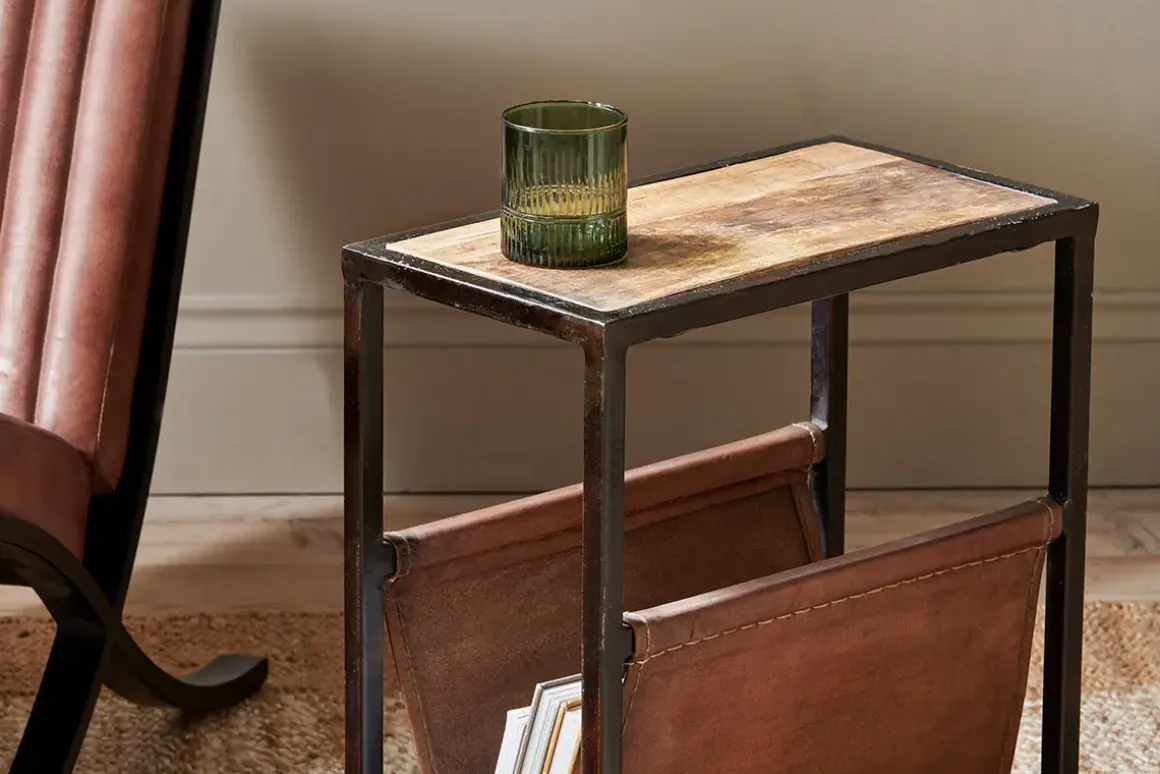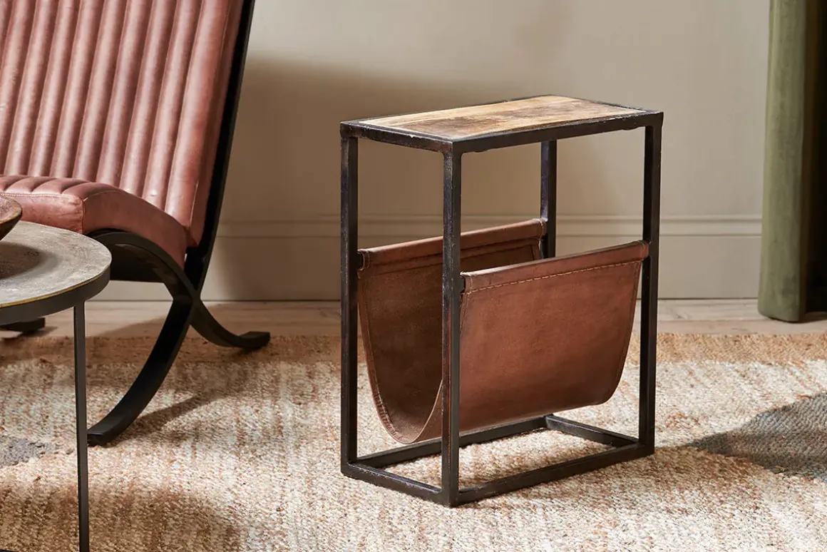 The well – proportioned design of our Alera side table blends sustainable mango wood and leather. The rich tones of the leather complement the calming natural grains of the wood and stylishly form a space for magazines and literature. The solid framework is crafted from iron.