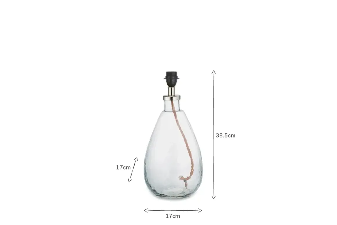 We think this elegant lamp base is divine. It is crafted from recycled glass by skilled artisans in Rajasthan. The hammered effect is created by hand when the glass is molten giving a beautiful textured and imperfect finish.