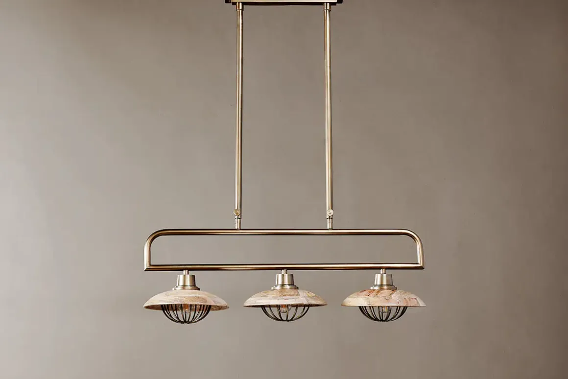 We’ve introduced this triple dinner pendant to our popular Chakai lighting collection as a dramatic statement piece sure to bring attention when positioned above a kitchen island, dining table or as a striking feature in a living room. It showcases two of our favourite materials: antique brass and sustainable mango wood, with the warm tones of the brass cage pairing beautifully with the natural grain of the wooden shade. Suspended on a solid frame, the height of the elegant Chakai dinner pendant is fully adjustable: lower to create a pool of light for a more intimate setting or raise to throw light further afield.