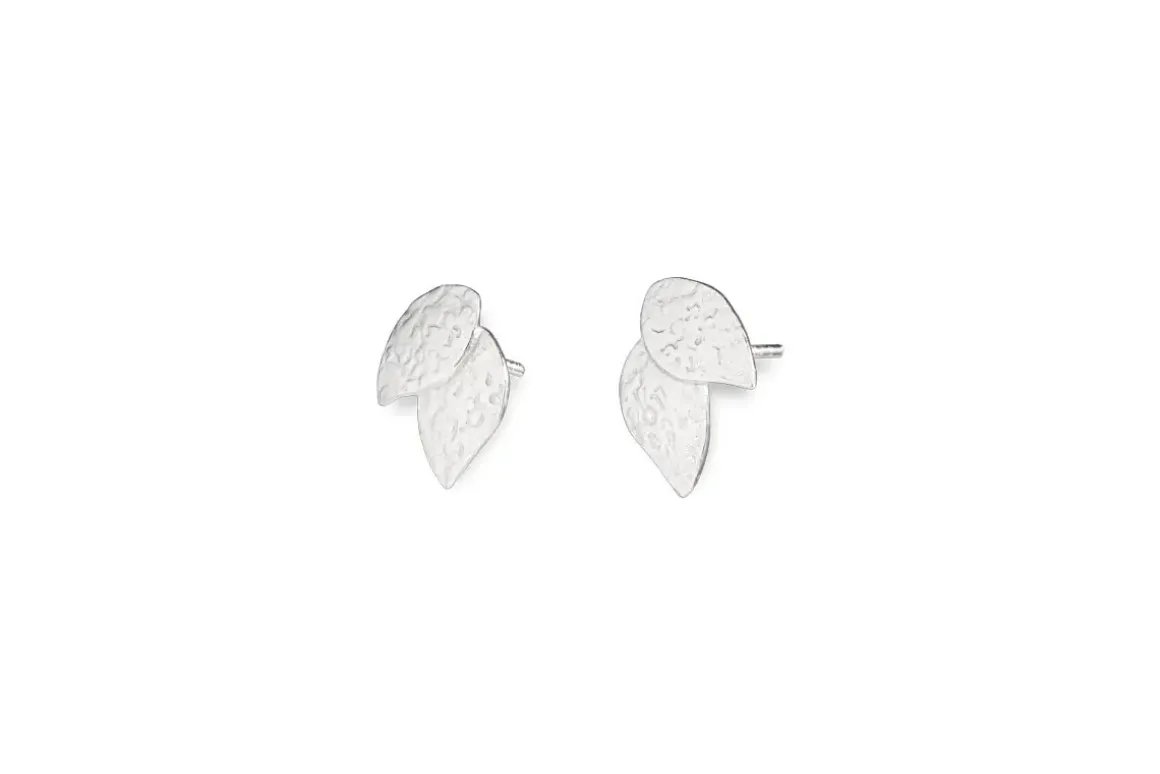 Our small silver plated Elina Double Leaf Earrings are delicately shaped and beautifully textured. A nod to the natural world, they are inspired by the wonder of botanical forms, exuding effortless grace and simplicity. Each piece is hammered by hand for a tactile finish.