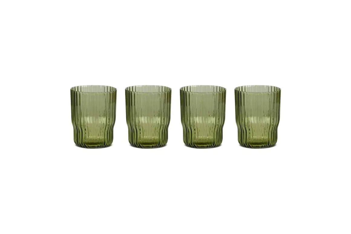 The olive green Fali tumbler has a fresh spring like quality. The colour runs through the glass in a solid colour. The ribbed design somehow enhances the olive tone, creating an interesting texture that also feels nice to hold. The Fali tumbler is perfect for everyday use and it makes an easy addition to a tablescape, adding a sophisticated colour tone. The olive green hue makes a welcome connection with nature, adding a peaceful and harmonious tone as well as a refreshing aesthetic.