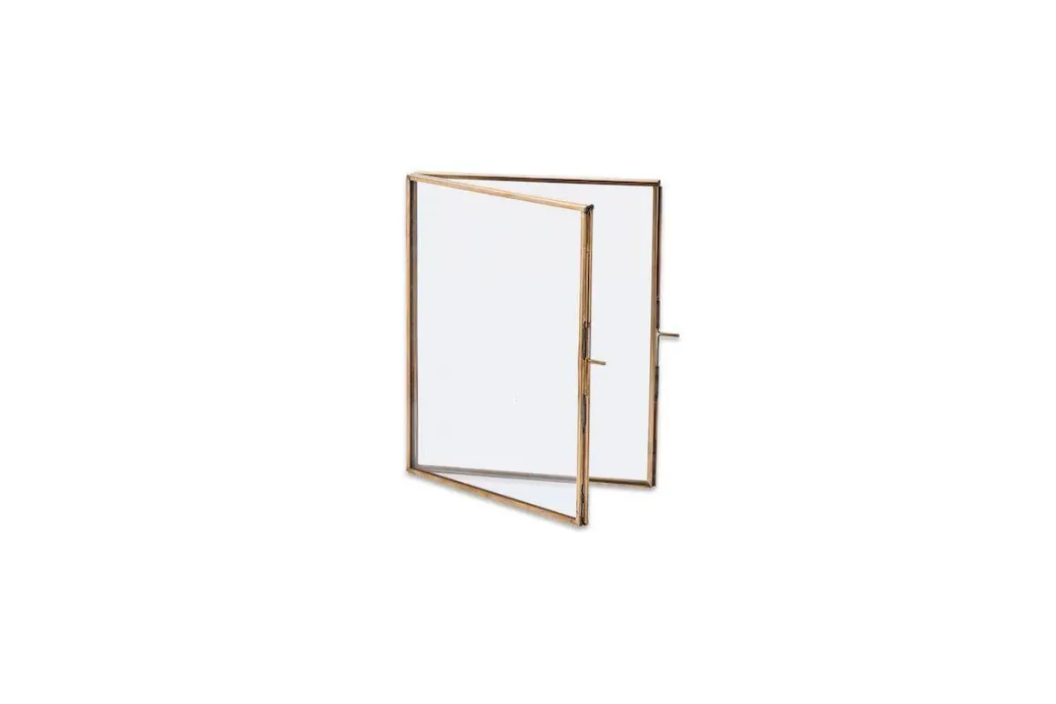 Our Danta folding frames have a traditional folding design. The double aperture is framed with antique black metal, skilfully soldered around the glass. The see-through design adds to the elegance of the frame.