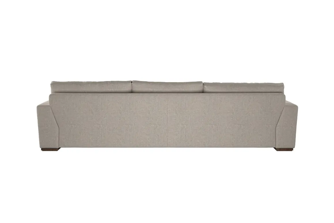 The laid-back sculptural shape of the Guddu super grand sofa brings effortless style to an interior. The generous arms and deep seat cushions make this collection the perfect choice for families or those that like a bit of extra space to stretch out. Details include separate back cushions, exceptional quality fabrics and solid wood block feet. Each piece is handcrafted by experts using traditional techniques for a quality finish that celebrates the best of British craftmanship.