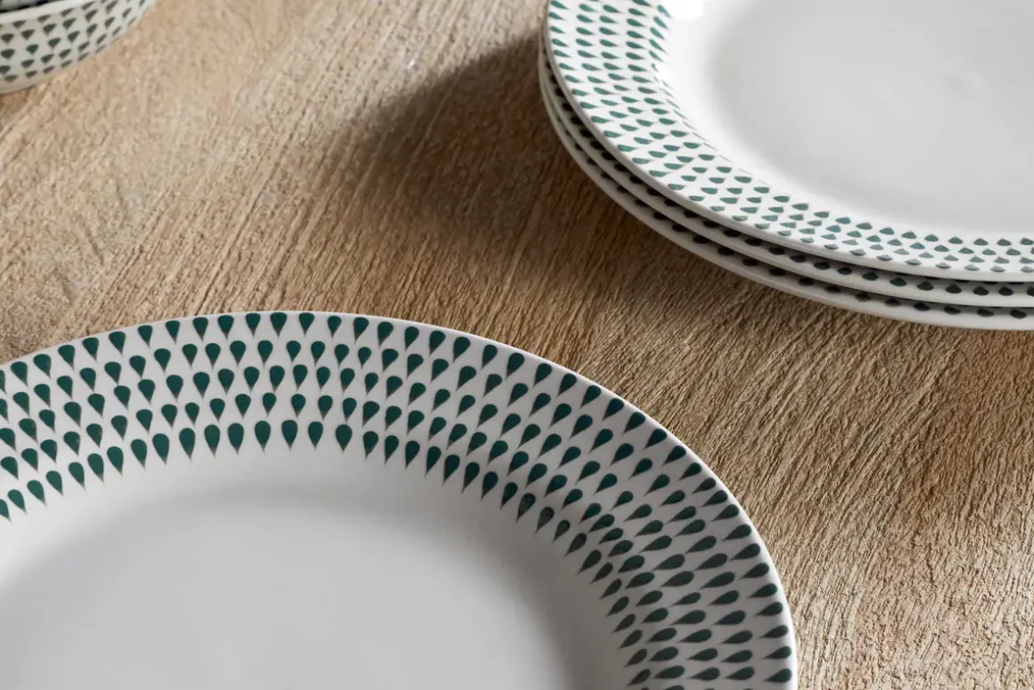 Striking in its simplicity, the Juniper Drop ceramic dinner plate features a soft, organic shape and a natural green drop pattern. The deep juniper tone brings a calming, contemporary edge to the table, while the bold design adds visual interest. Designed to stand alone or mix beautifully with the matching pieces, it-s a versatile piece for everyday meals or more elevated dining.