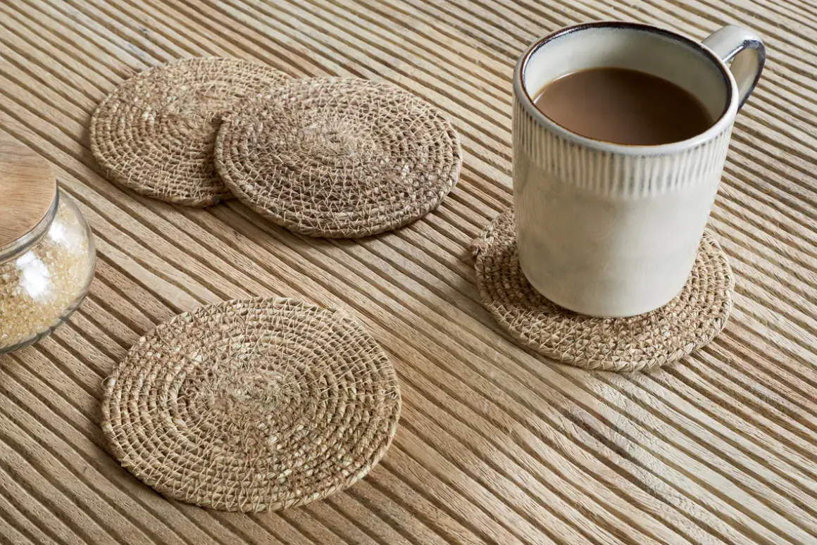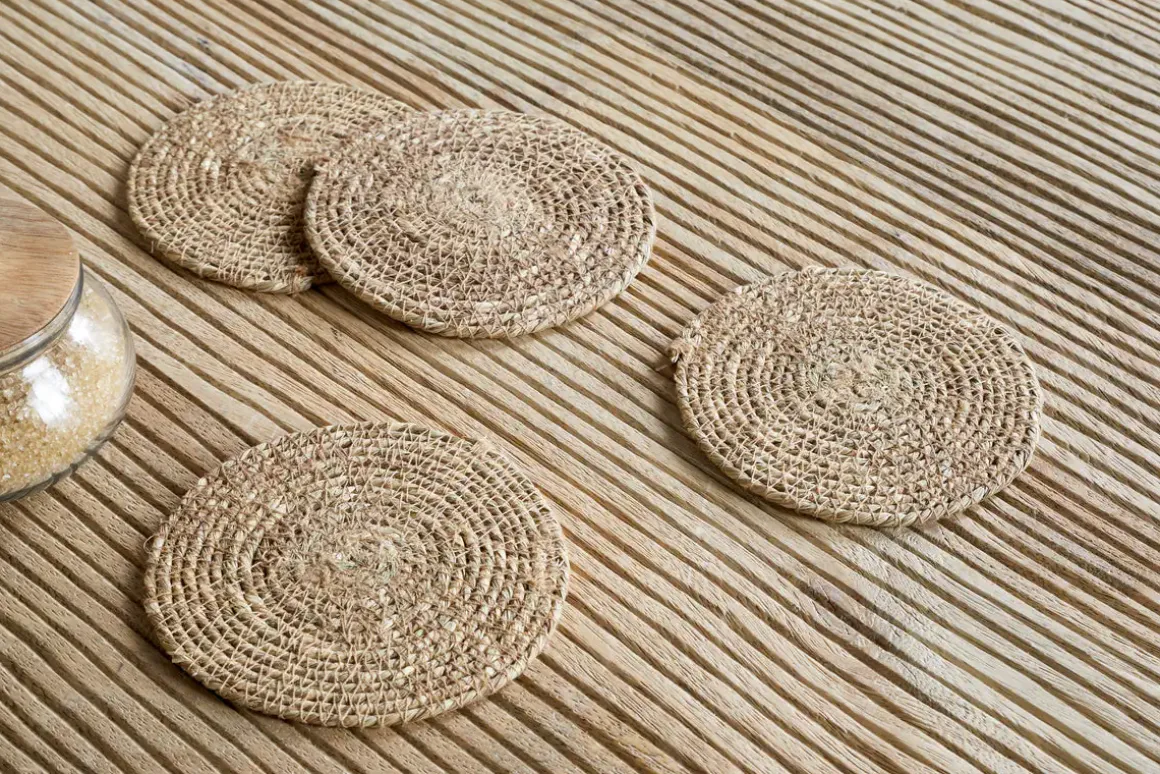 Lightweight and versatile, the minimalist design of our Keso banana fibre coasters makes them a natural addition to any table, perfect for both everyday meals and special occasions. The handwoven banana fibre material brings a unique texture which is tactile and functional. A simple yet stylish addition to your tabletop. Also available as placemats.