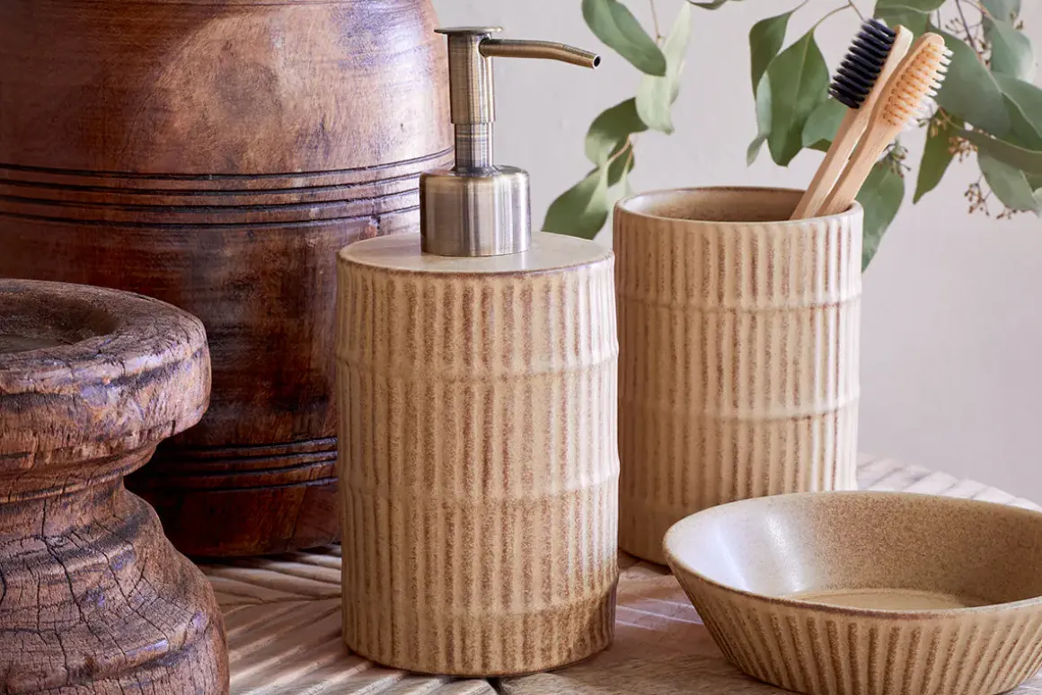Add a spa-like feature to your bathroom with our Kiani ceramic soap pump. Its neutral reactive glaze adds a refined touch, while the etched design brings texture and character. This elegant yet practical piece helps create a calm, sophisticated atmosphere, blending style and function effortlessly.