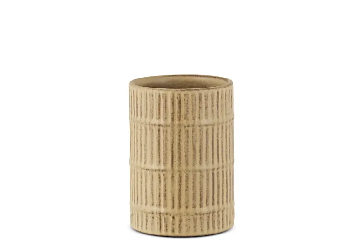 Add a spa-like feature to your bathroom with our Kiani ceramic toothbrush holder. Its neutral reactive glaze adds a refined touch, while the etched design brings texture and character. This elegant yet practical piece helps create a calm, sophisticated atmosphere, blending style and function effortlessly.