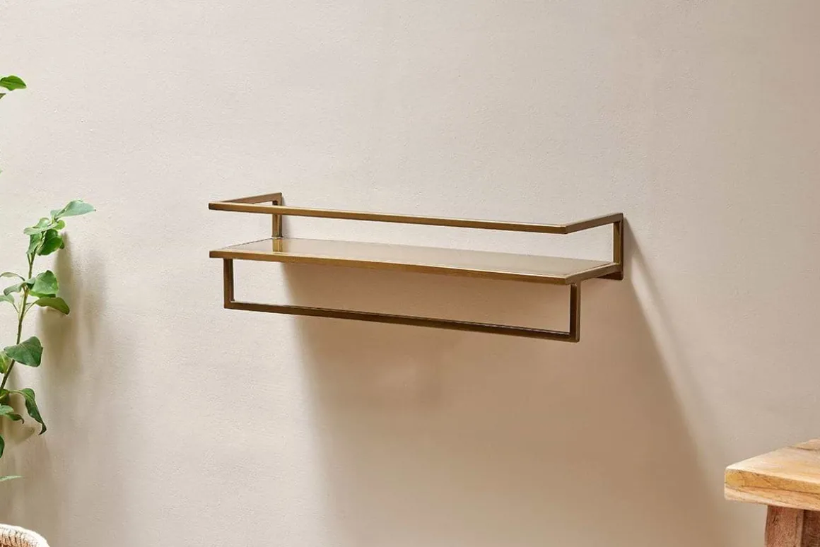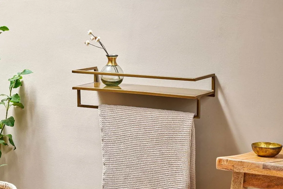 Upgrade your bathroom wih the stylish Mahi wall shelf with towel rail. The warm tones of the brass and the simple design of the Mahi shelf and rail feel elegant and contemporary. The well-sized shelf can hold a good mix of toilteries and accessories and the sturdy rail is a good size for a hand towel and face cloth. The Mahi wall shelf and towel rail is wall mounted. Please make sure you use wall fixings that are suitable for the type of wallyou are attaching yours to.