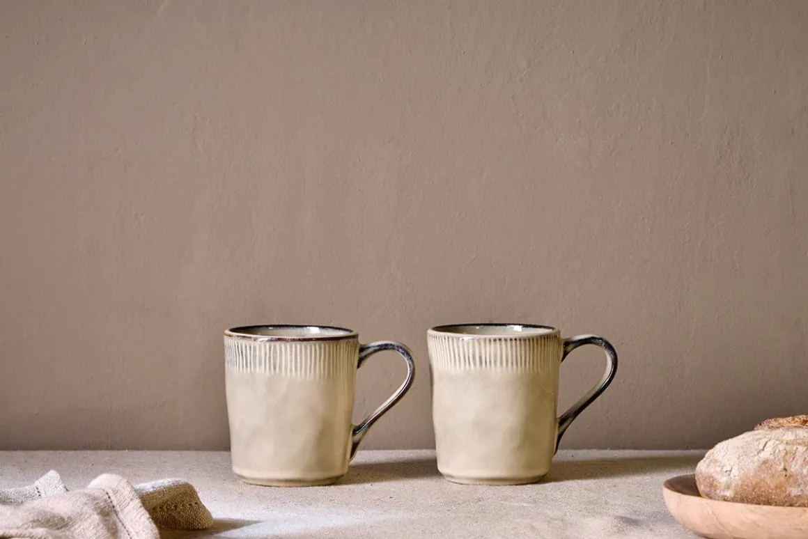 Embrace cosy living with our Malia mug in cream glazed stoneware. The organic shape and imperfect finish add layers of character. Each piece in our Malia collection is completely unique, thanks to the use of a reactive glaze. The heat from the kiln spontaneously changes the glaze so you might notice interesting markings or colour changes, all of which bring their own original style. The look is completed with delicate hand painted lines around the rim. Pair with the Malia bowl for a sophisticated breakfast set.