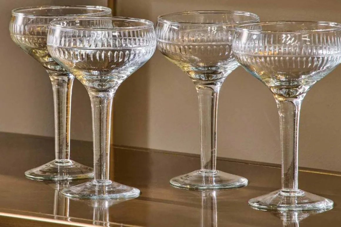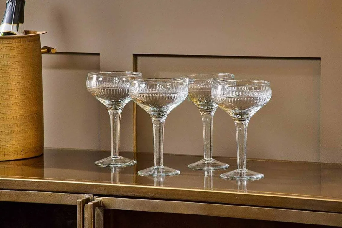 Celebrate in style with our elegant Mila champagne glasses. The sophisticated champagne glass shape and pretty etched detailing are sure to add to the sense of occasion. Each Mila glass is crafted from recycled glass and the etching is completed by hand.