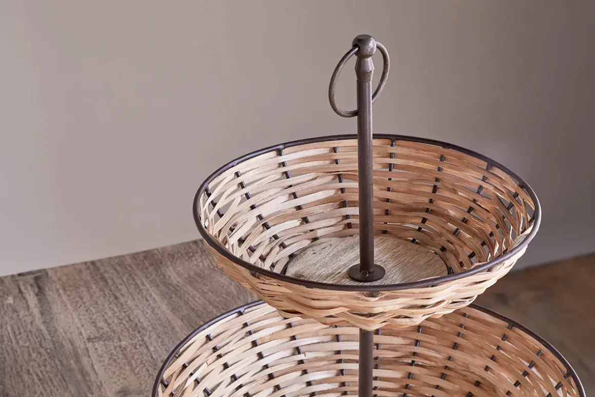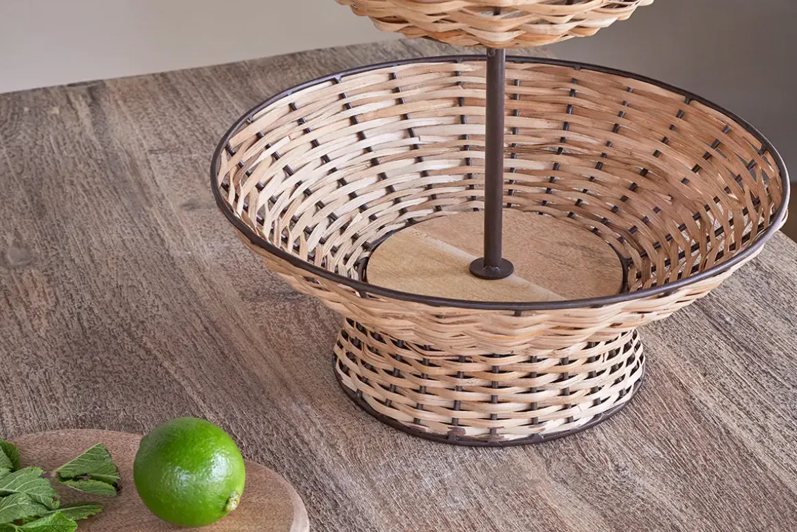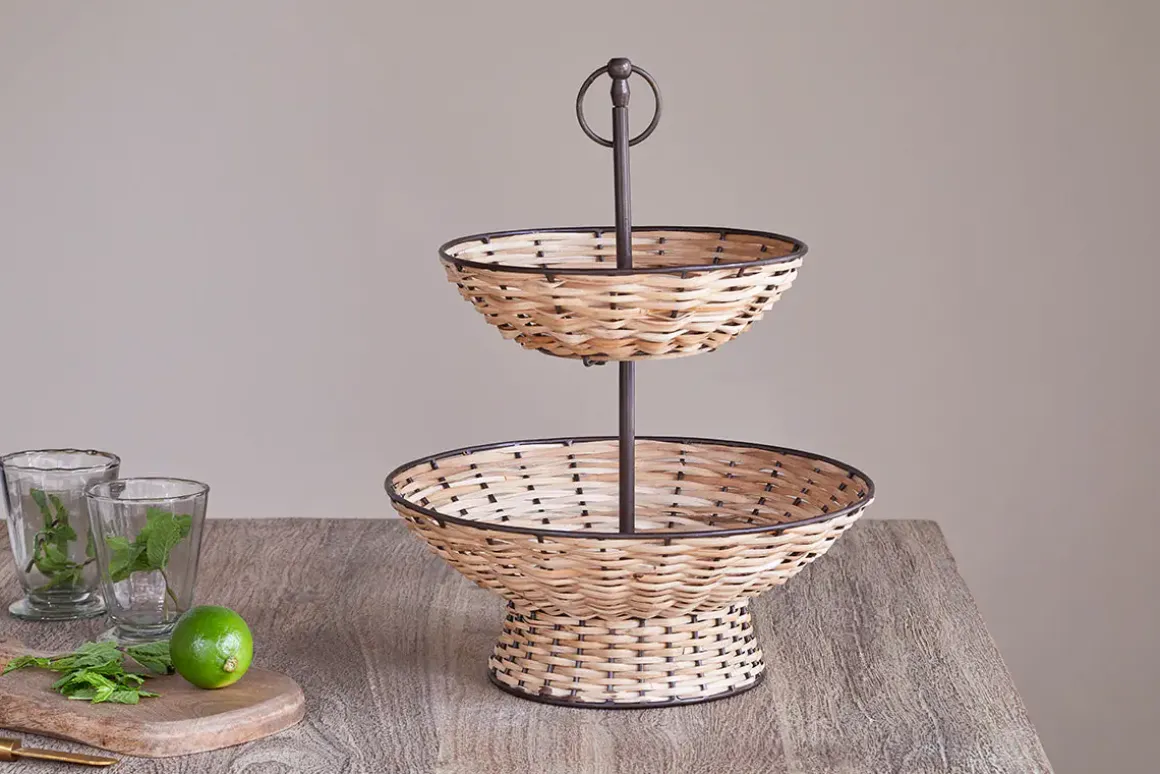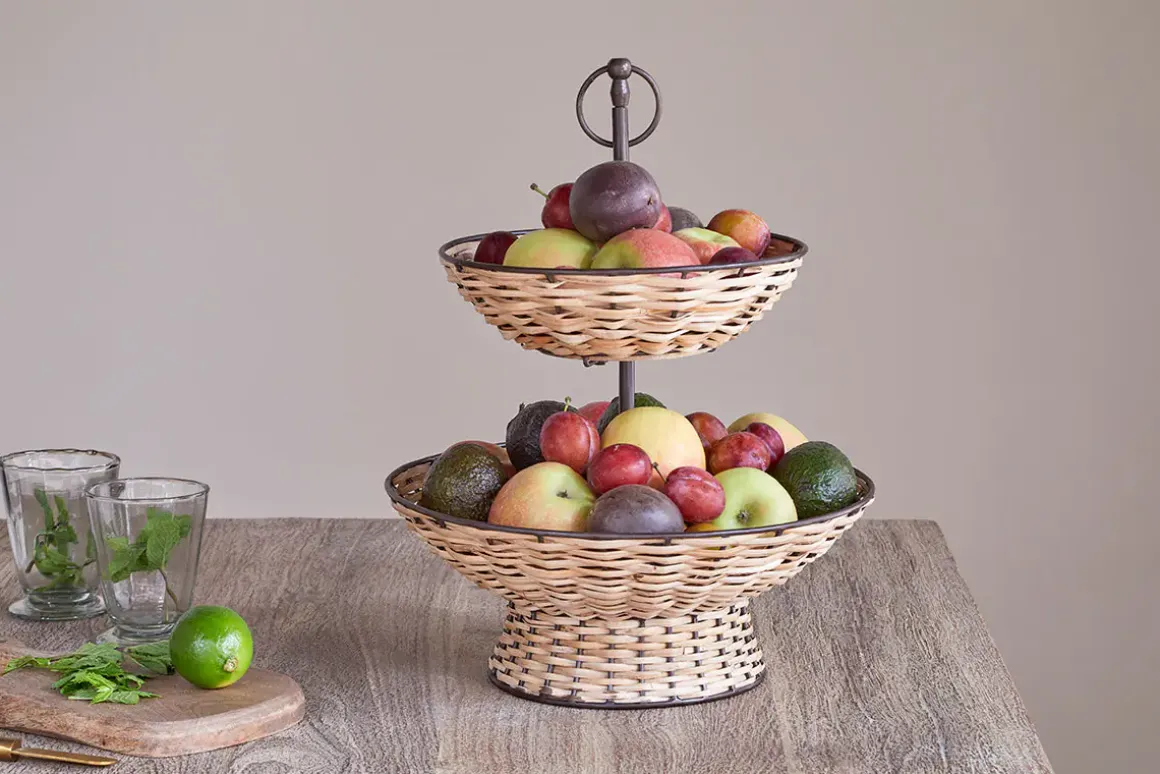 Montali Rattan 2 Tier Fruit Stand – Black & Natural