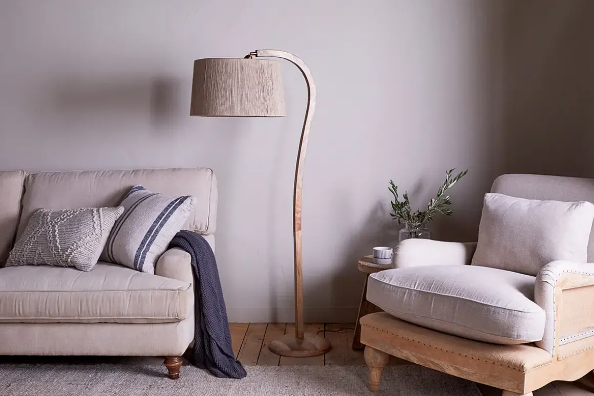 Our Namira Floor Lamp is both striking and distinctive. It has been expertly crafted from pieced-together mango wood , creating an eye-catching arch shape that makes a statement without occupying too much floor space. As a core material in our designs, mango wood easily complements the rest of our collection. Pair this lamp with any of our large lampshades to create a stunning and cohesive look that enhances your living space.