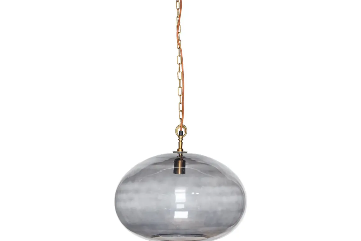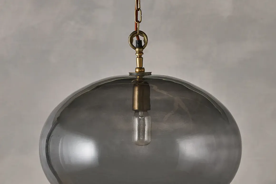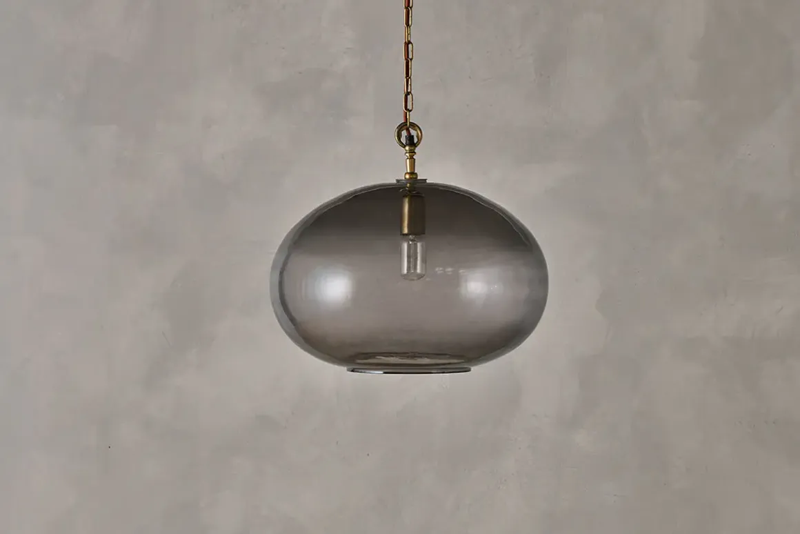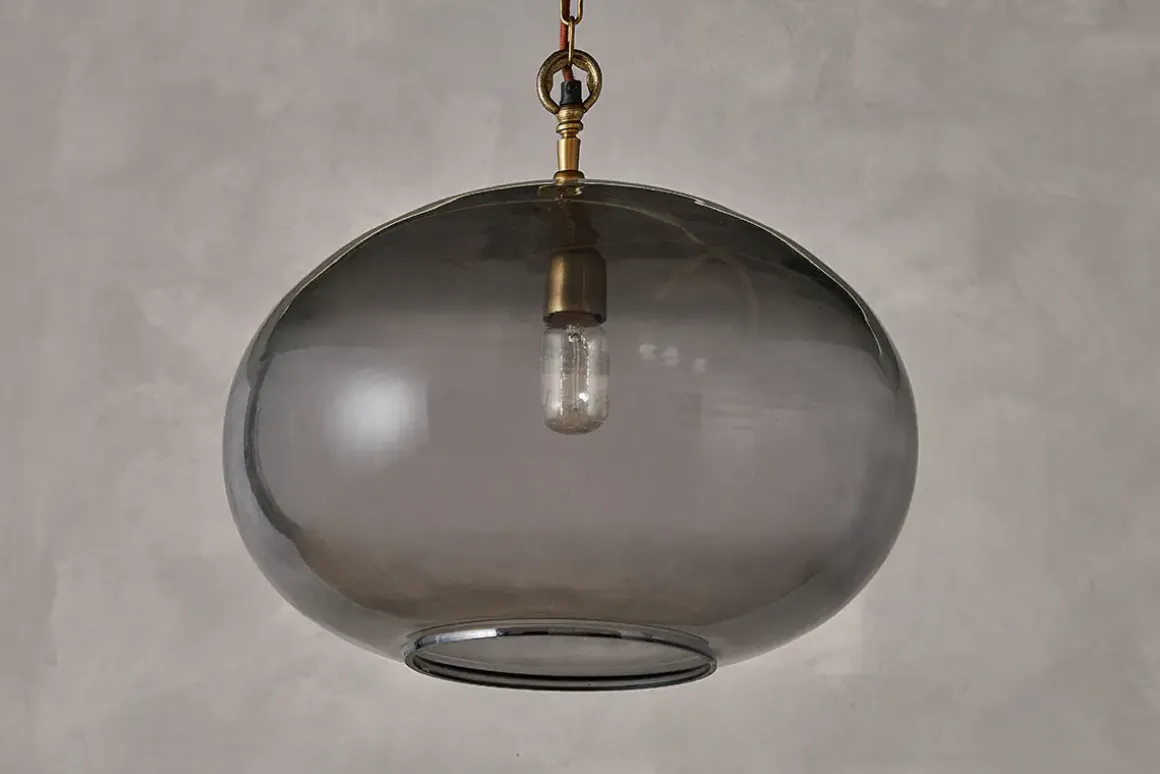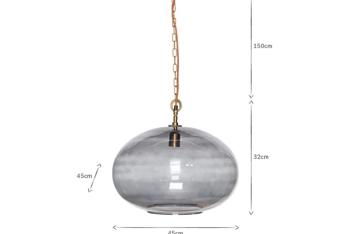 Create a focal point with our striking large round Otoro pendant light, beautifully crafted from recycled glass in a sophisticated smoke hue that gently diffuses the light. When switched off, the elegant neutral colour adds warmth to the room and when on, the light is soft and delicate. The size of the light makes it an impressive feature light. Style as a central light in your living room or hallway, or position in a stairwell or entrance porch.
