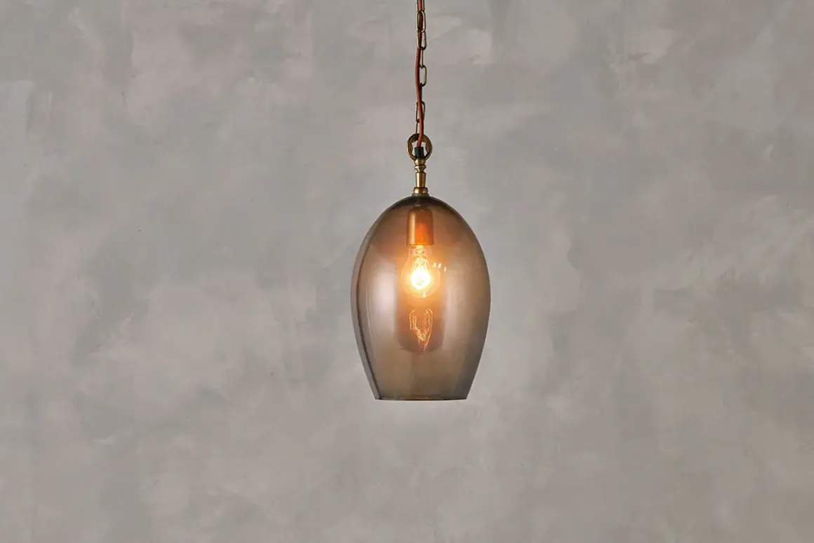 Create a striking focal point with our Otoro small oval pendant light, beautifully crafted from recycled glass in a sophisticated smoke hue that gently diffuses the light. When switched off, the elegant neutral colour adds warmth to the room and when on, the light is soft and delicate. It makes the perfect feature light. Style as a central light in your living room or hallway, or position in a stairwell or entrance porch.