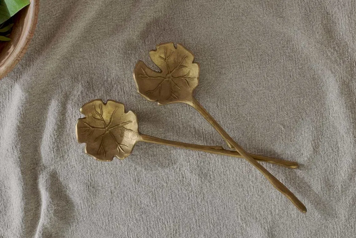Prakriti Leaf Salad Servers – Brushed Gold (Set of 2)