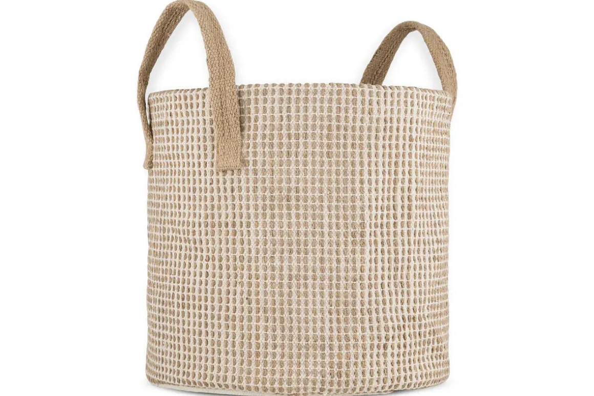 This simply woven basket, in complementary tones of natural jute and cream, fits into any living scheme, creating extra storage that can easily be packed away when not in use. We find fabric baskets are supremely versatile and useful for clearing away clutter, helping to create a tidy, organised home, while adding texture, warmth and aesthetic appeal to a room. With handles for ease of carrying and a soft cotton lining, this basket is perfect for clearing clutter neatly away, blending utility and aesthetic appeal.