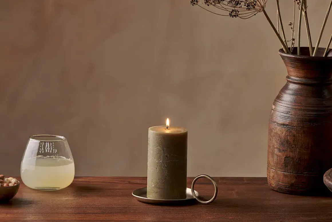 Rustic Soy Blend Pillar Candle – Olive Green – Small