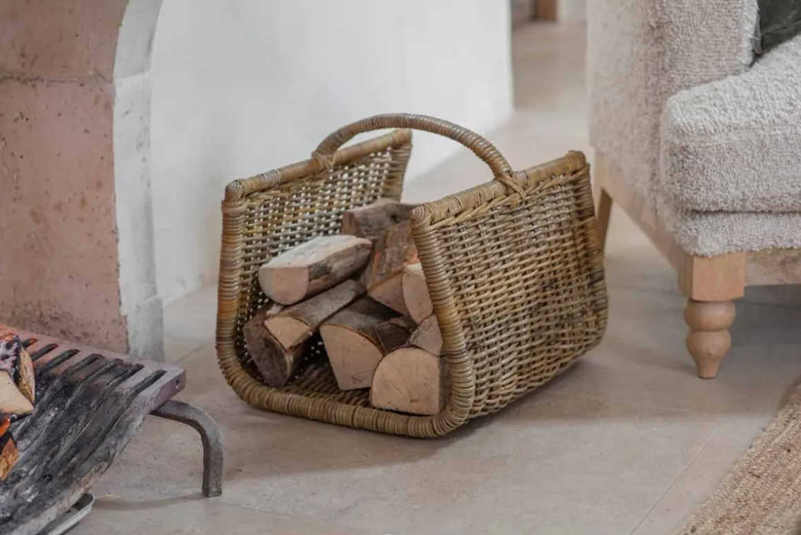 The perfect shape for fireside logs, with a sturdy arching handle for ease of carrying when it’s time to restock, our Sadra basket is a beautiful choice for any hearth. Ethically made from rattan by skilled artisans, this basket is an effortlessly stylish way to store wood by the fire.