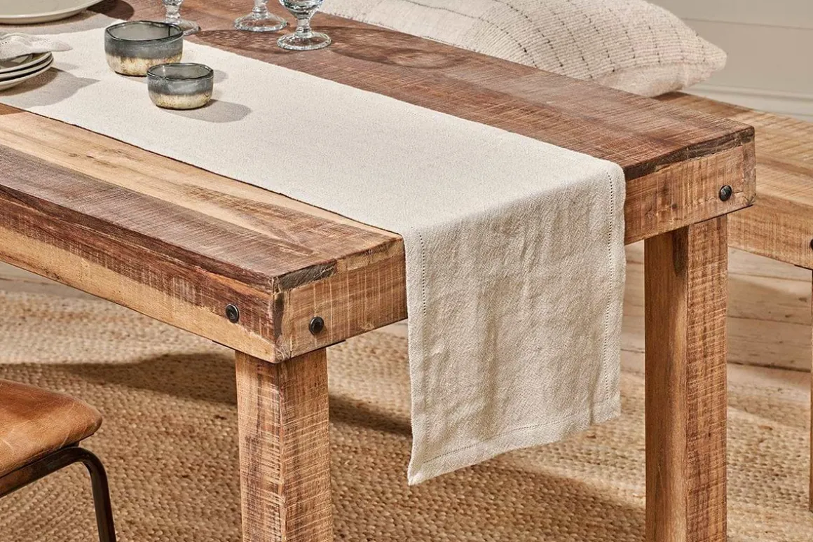 Add an elegant flair to your dining table with our stylish Sanee runner. Crafted from sustainable linen and cotton, its understated design and neutral hue make it a decorative feature that is both versatile and practical. The use of natural textiles means the runner is as durable as it is stylish, while also feeling soft and luxurious to the touch. Style with the Sanee napkins and placemat to bring a sophisticated, pared back aesthetic to your tabletop.