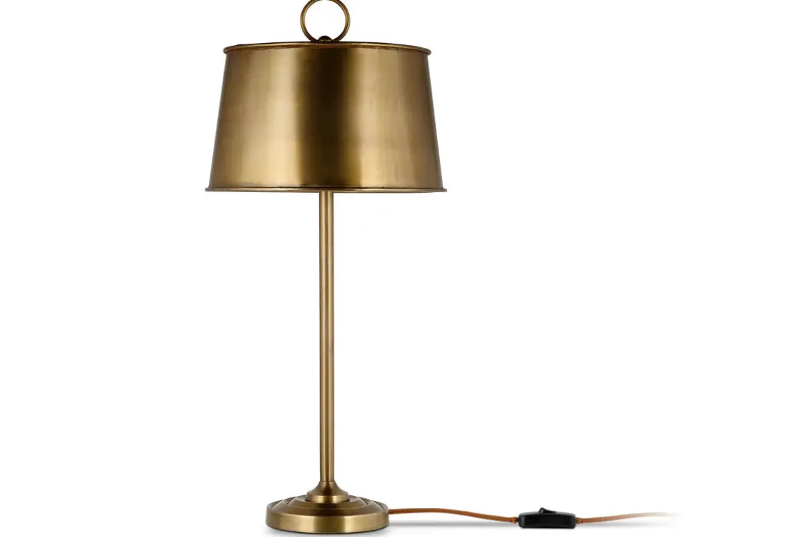 Our Siwan Table Lamp is a vintage-inspired statement piece that exudes elegance. The antique brass finish on the shade offers a unique take on classic style, making it a standout addition to your home. This lamp not only illuminates but also brings a timeless sophistication to any living or work space, perfect for those seeking both style and function.