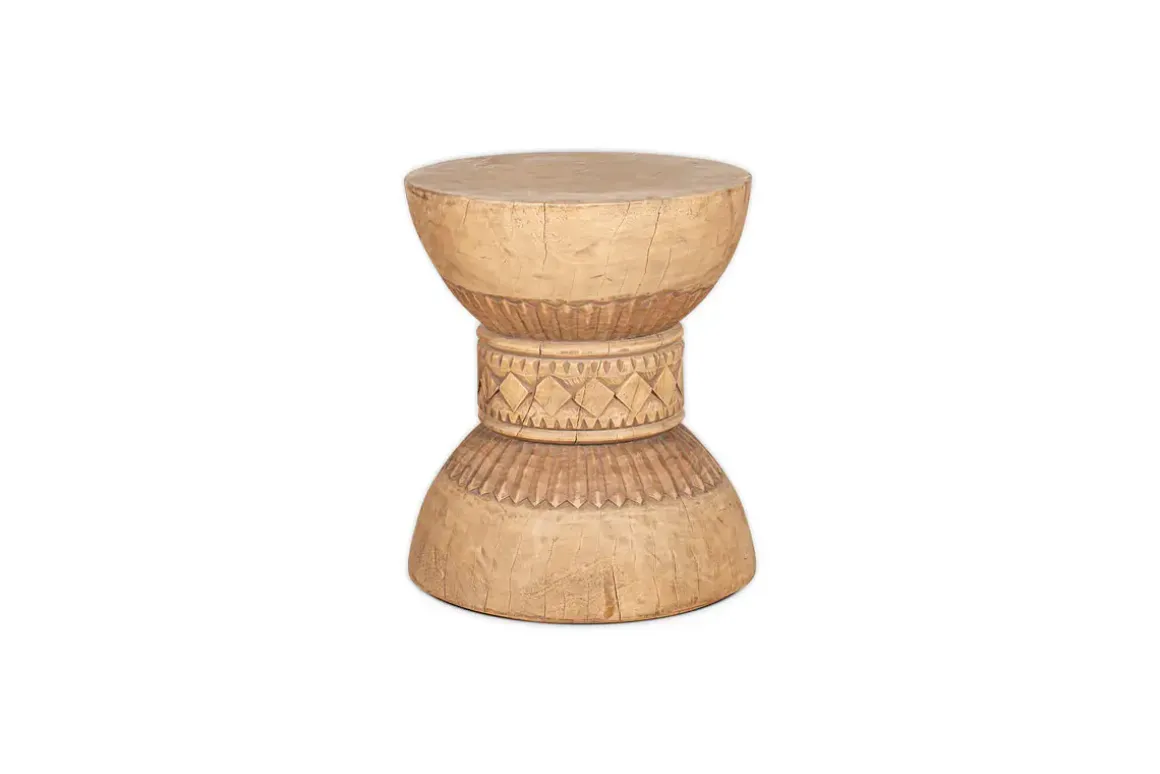 With its bold silhouette and rustic finish, this hand-carved side table adds natural warmth and character to any room. Made from solid wood, it features a traditional Indian design that brings sculptural interest and earthy texture to your space. The compact form makes it ideal as a side table or statement accent, blending effortlessly into both contemporary and classic interiors.