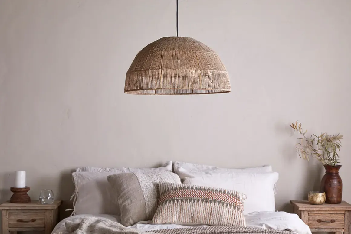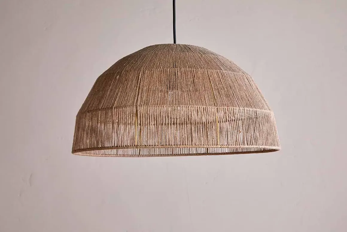 Our Tivi Jute Lampshade highlights the beauty of jute, a core material for nkuku. Its natural fibres offer a raw, rustic look, while the dome shape provides a soft aesthetic. Designed to let light stream through the woven fabric, this lampshade effectively disperses illumination, creating a warm glow and elegant ambience.