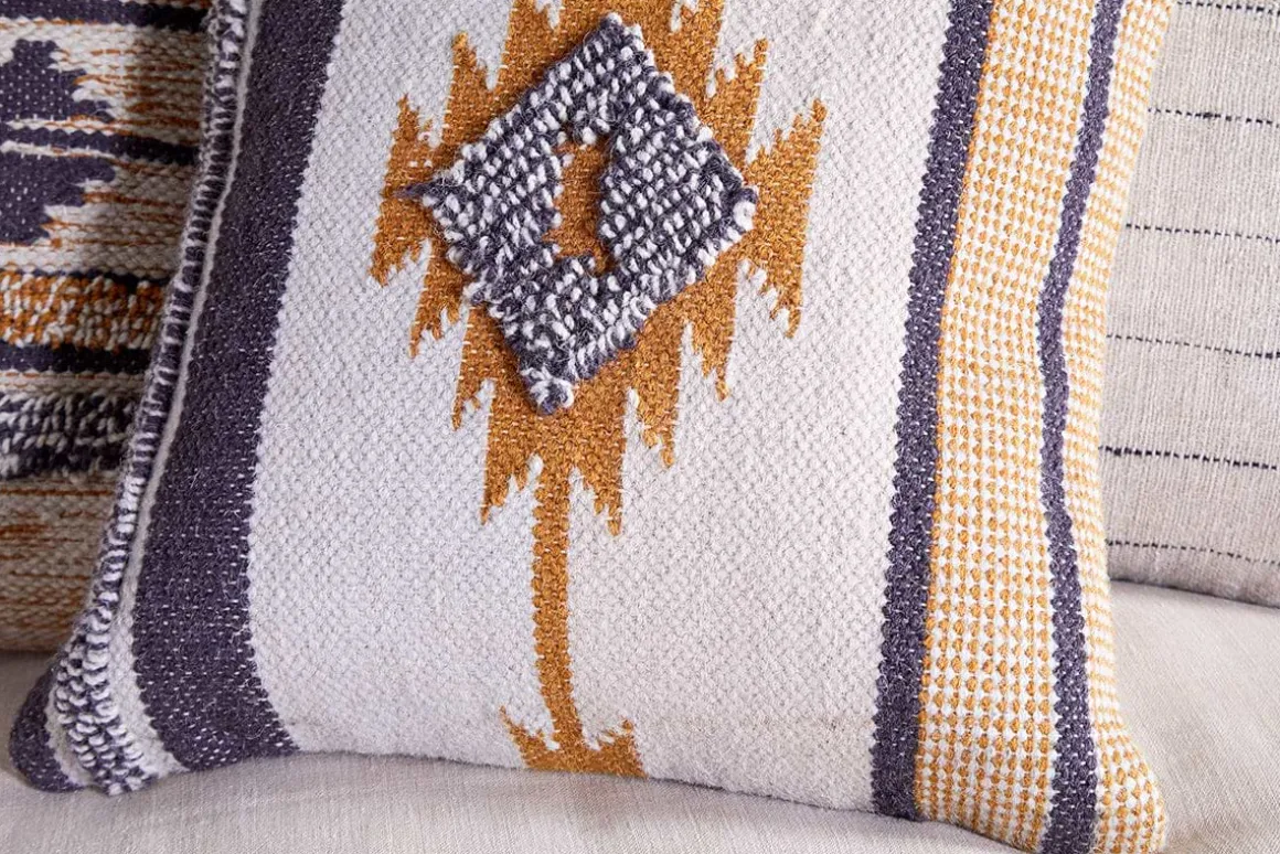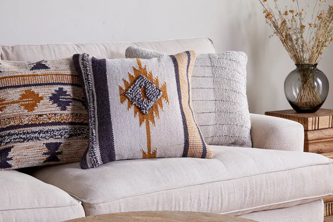 Texture and warmth exude from this collection of tactile Tussi Mara cushion covers. Tones of mustard, black and natural run through each design in eye-catching patterns.Our feather cushion inners will accompany your cushion cover perfectly. Please note, the size of the cushion inner will display slightly larger than our cushion covers to allow for a plump finish when put together. Our square cushion inner pairs perfectly.