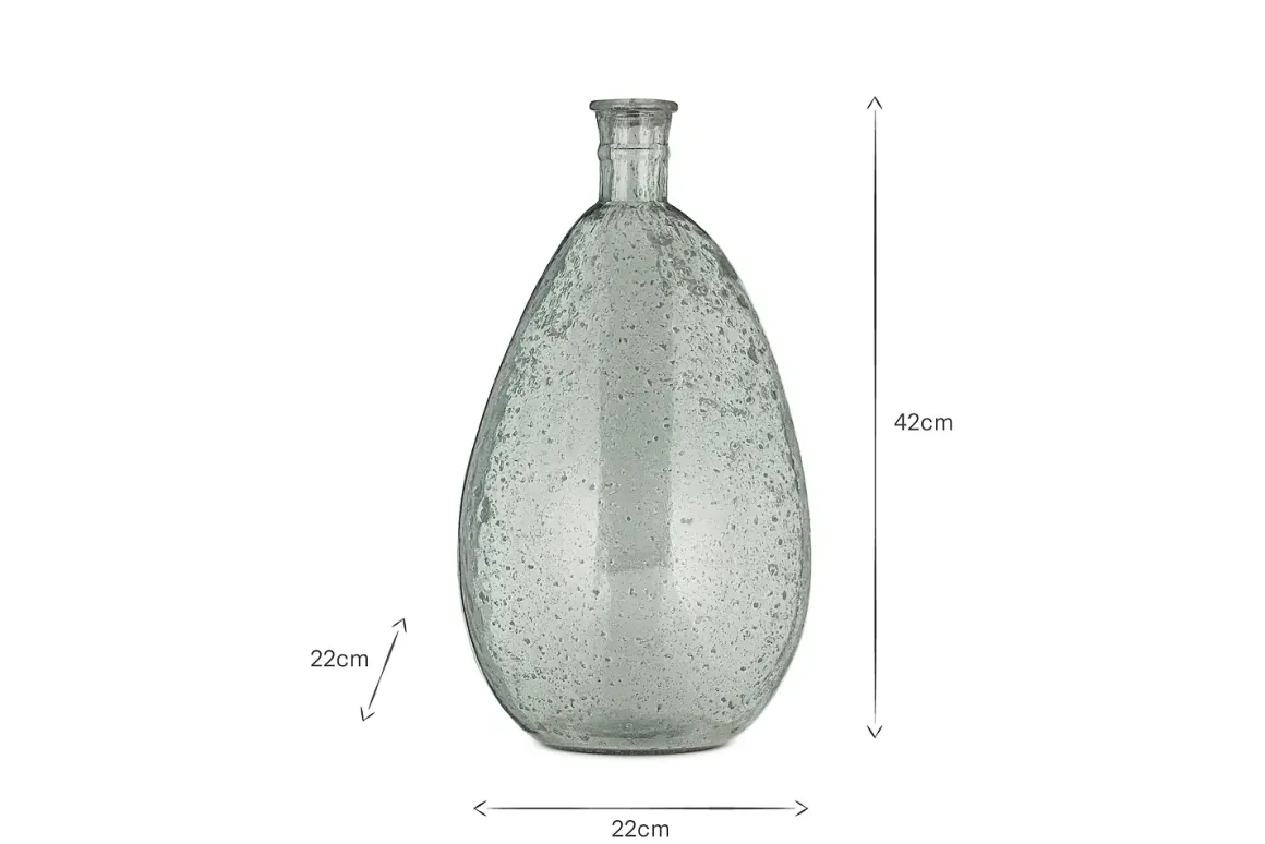 Made from recycled glass, each Virya vase is beautifully individual with a subtle bubble finish that adds texture and character. Soft blue in colour, it is strikingly versatile for use in any season. With a narrow neck and generously organic shape, we love to use this vase for elegant floral displays on a dining table or sideboard. Our Virya vase is a sophisticated statement piece with or without flowers.