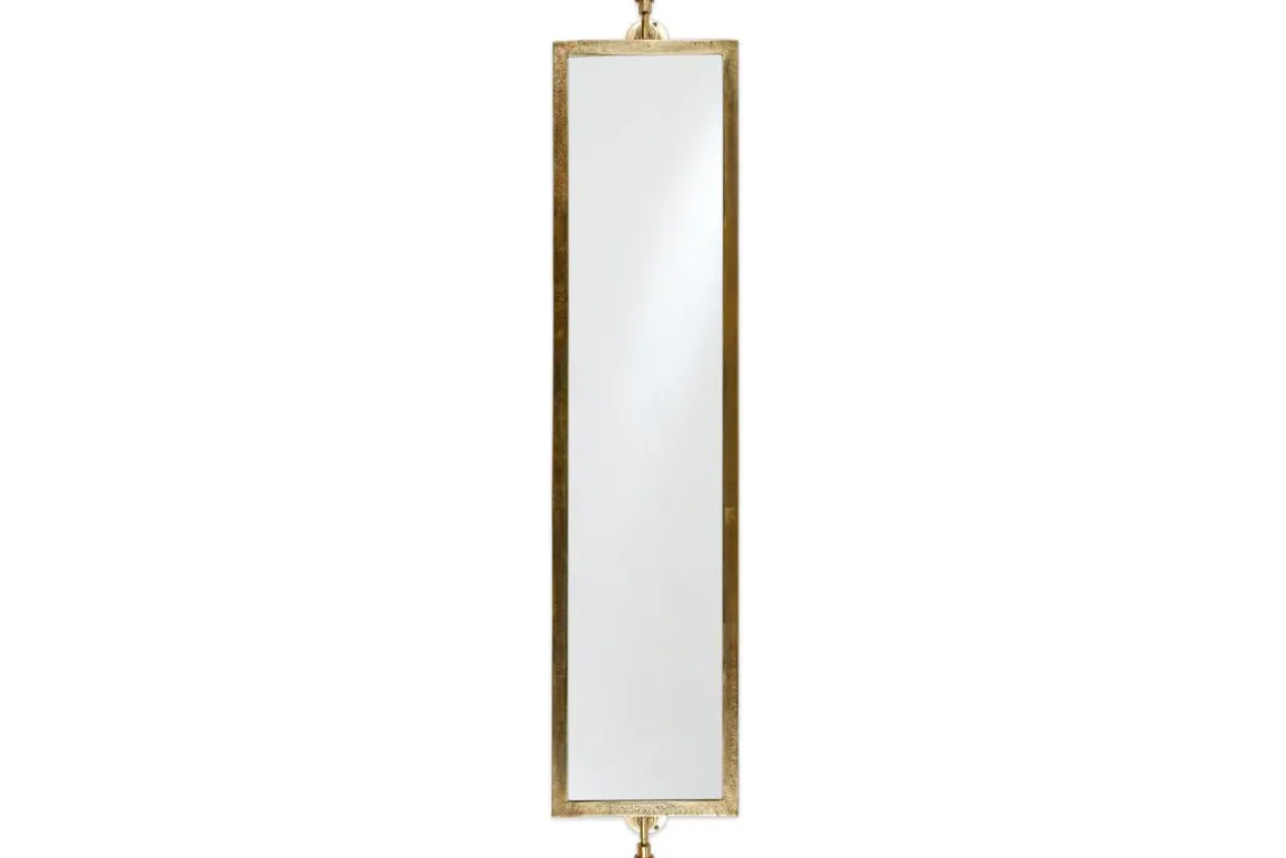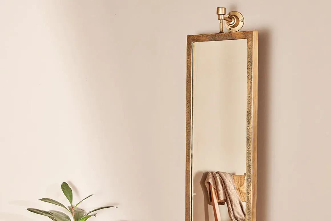 Our Visala full length swivel wall mirror is a statement mirror that promises to bring a strong sense of style to a bedroom or hallway. The well- considered pivot design allows you to rotate the mirror to various angles. The luxurious yet in some ways industrial wall fittings sturdily support the cast aluminium mirror frame. The texture of the cast aluminium and the golden hues of the brass finish add to the quality this Visala mirror exudes. The Visala mirror is made using a traditional sand casting process. The process involves a handmade process. Sand is used to shape and mould the liquid aluminium. Sand casting is an essentially circular production process where nearly all materials can be recycled.