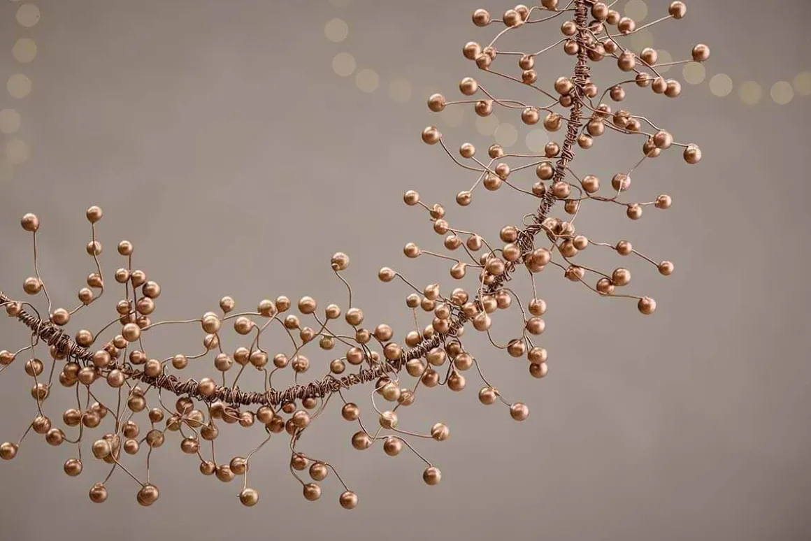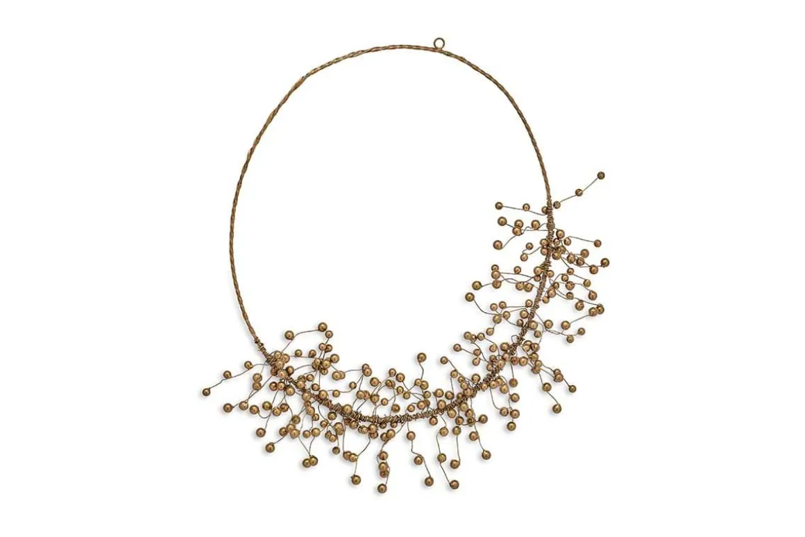 The elegant Agatti berry wreath marries the traditional circular shape of a wreath a symbol of eternity with a stunning array of handcrafted brass berries. The contrast of the plain brass ring and the decadent display of berries works well together creating a beautiful display for a wall or door. The Agatti wreath is a striking standalone decoration but can also be dressed with foliage or fairy lights if you wish to personalise your display.