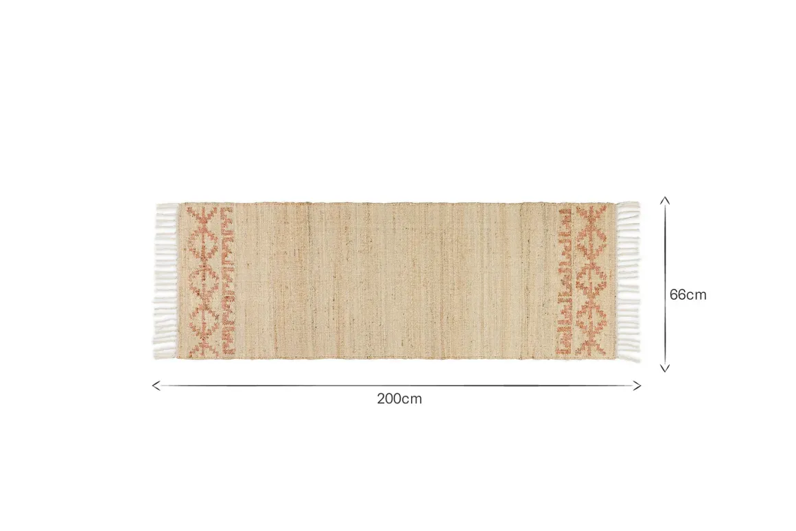A versatile addition to your home, our Akari runner features a traditional Indian pattern with a warm rust-coloured border. Woven on a handloom utilising natural materials jute and cotton for the perfect blend of textures. Jute is one of our favourite materials at nkuku; we love it for being completely biodegradable and recyclable, incredibly efficient to grow, and beautifully hardwearing with a smooth finish.