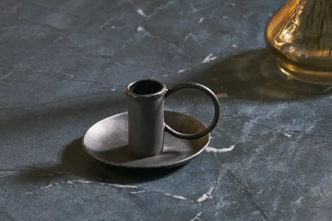 The antique black tone of this Amiri candlestick is dramatic and striking. Its traditional design brings an age-old charm to a dining table or mantlepiece. Style with one of our dinner candles, click here to view the collection.