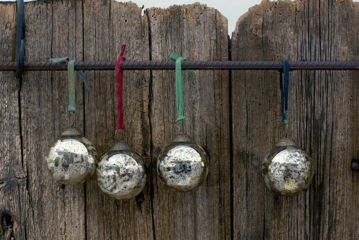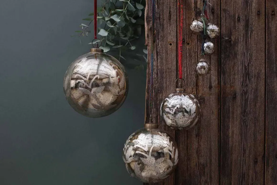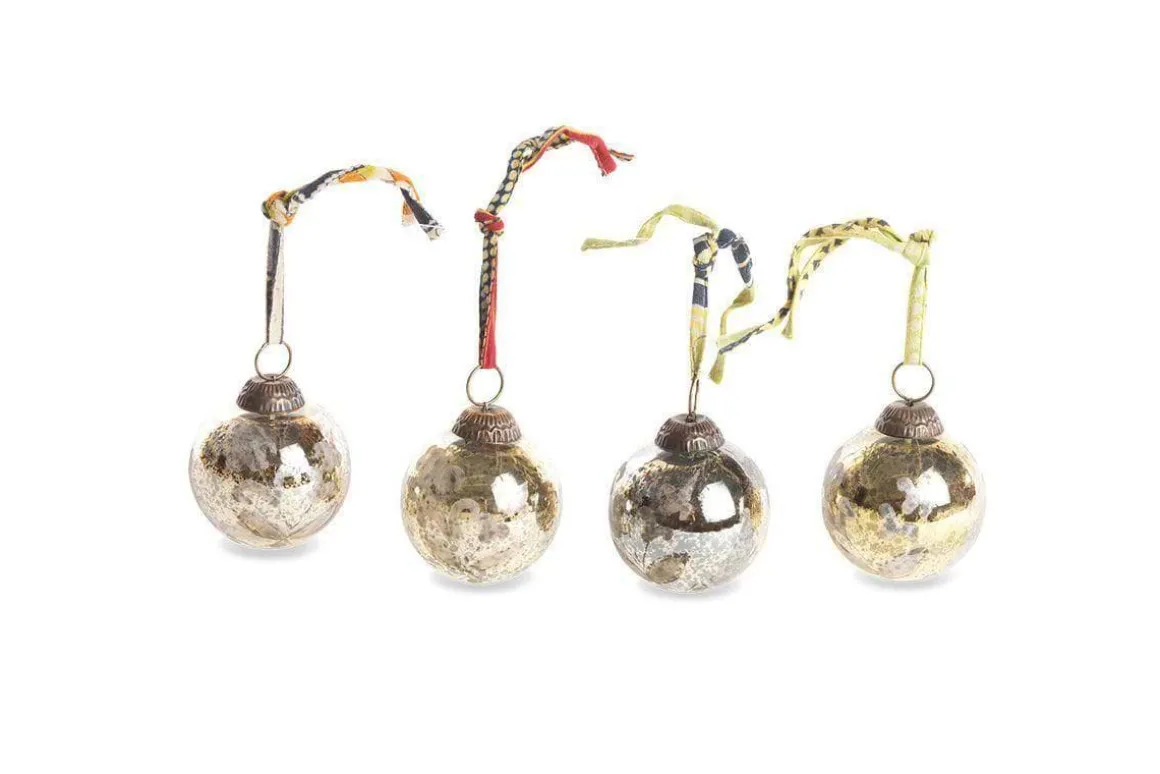 Decorate your tree with these antique glass Christmas baubles. Each glass silver bauble is handmade by skilled artisans and features an antique sari tie.