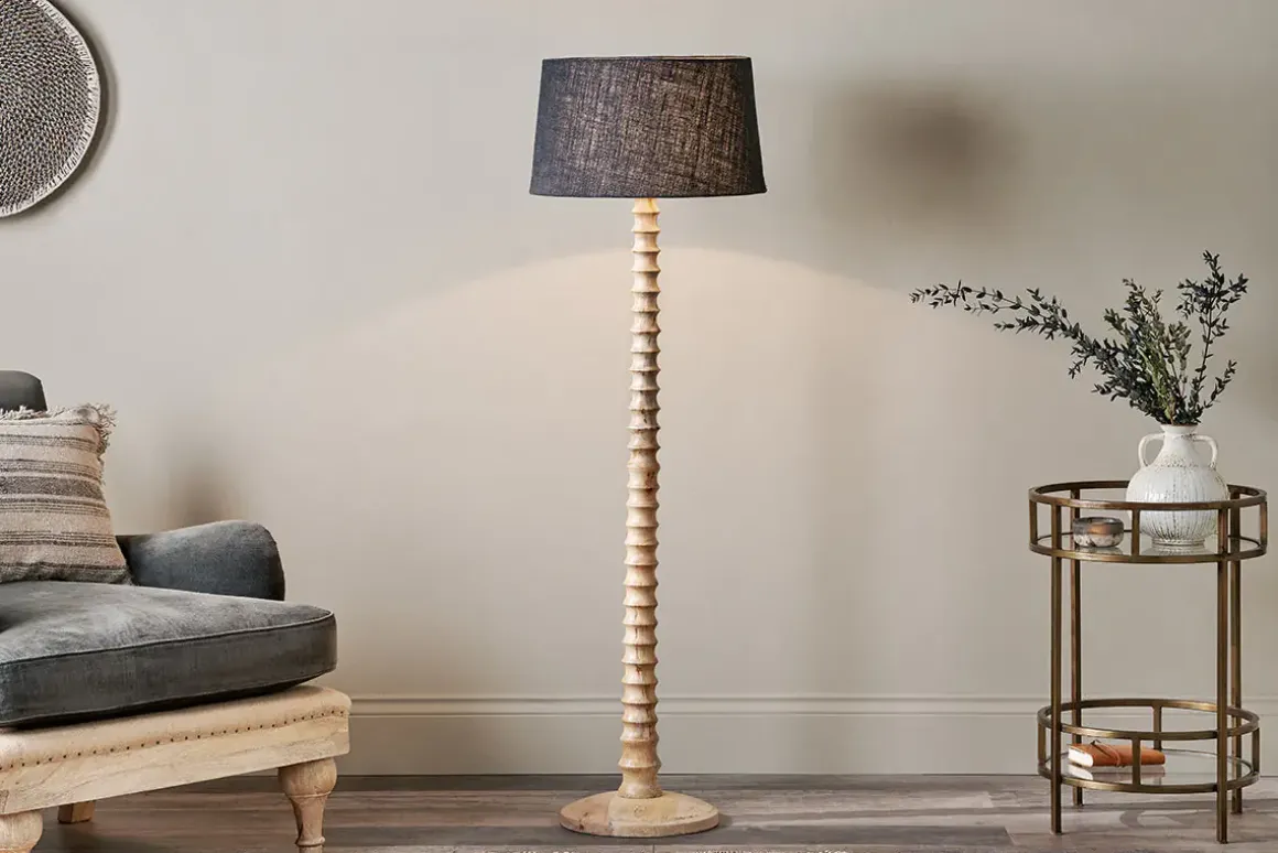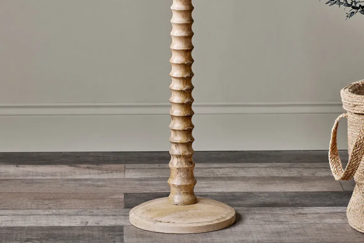 The hand carved spiral design of the elegant Avisa floor lamp has been created from one continuous piece of solid mango wood; a material we love for its sustainable properties. It will bring instant interest to a dark corner of a room, makes a striking reading lamp and adds character to any interior scheme for a relaxed and welcoming atmosphere. Pair with a Dia jute shade for a classic look or the natural weave of our Feya range for a more unique style.