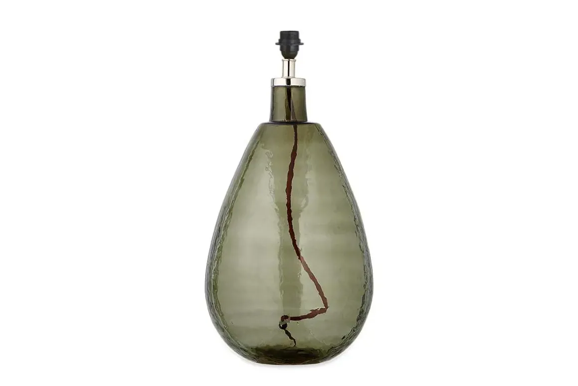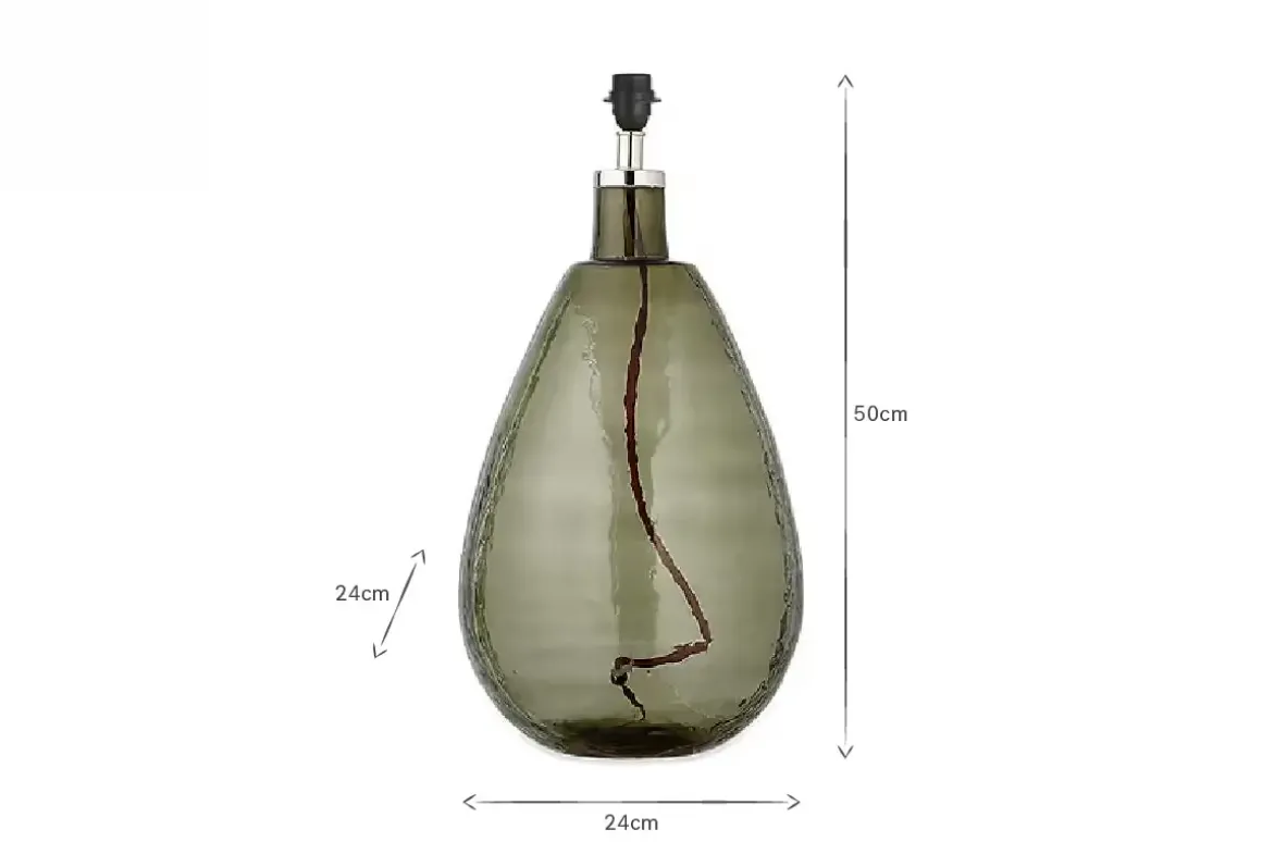 Elegant and timeless, the organic shape of these beautifully crafted green smoke-hued glass lamp bases would add the finishing touch to any interior. The Baba is skilfully made from recycled glass, handblown into a mould and delicately hammered to create an irregular but smooth finish. The height of these elegant lights makes them ideal for a sideboard or console. Complete the look with one of our lampshades.