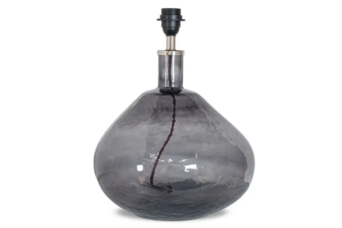 The curvaceous form of our organic-shaped Baba table lamp is skilfully crafted from recycled glass with a soft, textured hammered finish. This is a statement piece that adds natural, welcoming warmth to your home, whether placed on a sideboard, an entrance hall table, or by your bedside for a unique ambiance. The smoky hue of this lamp base enhances the rest of your furnishings and looks beautiful when styled with a Dia jute lampshade to complete the look.