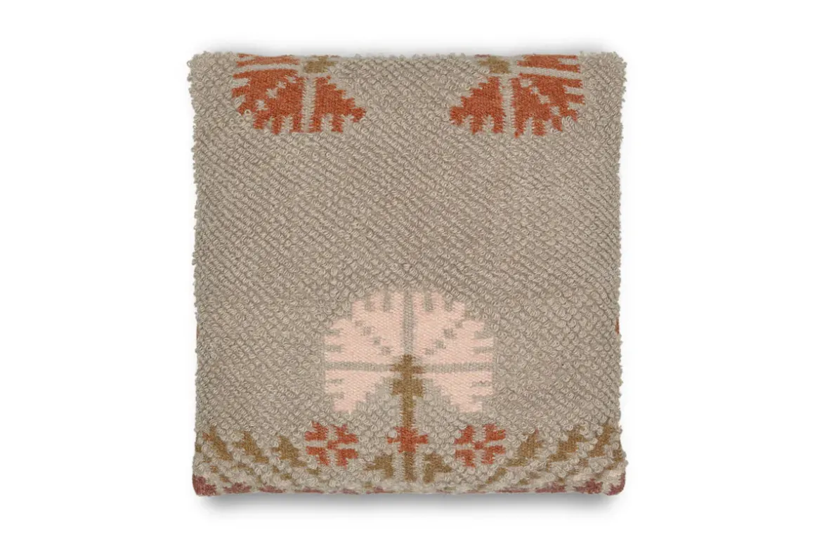 Hand crafted on age-old looms, our Bagru cushion cover marries ancient Indian craftsmanship with contemporary style. The traditional Indian floral design is intricately woven into the fabric and presented in soft, muted shades of pink and grey. We love the blend of wool and cotton to combine natural texture with natural comfort. This cover is perfect for adding understated elegance and warmth to your living space. Also available in a rectangular shape. Our feather cushion inners will accompany your cushion cover perfectly. Please note, the size of the cushion inner will display slightly larger than our cushion covers to allow for a plump finish when put together.
