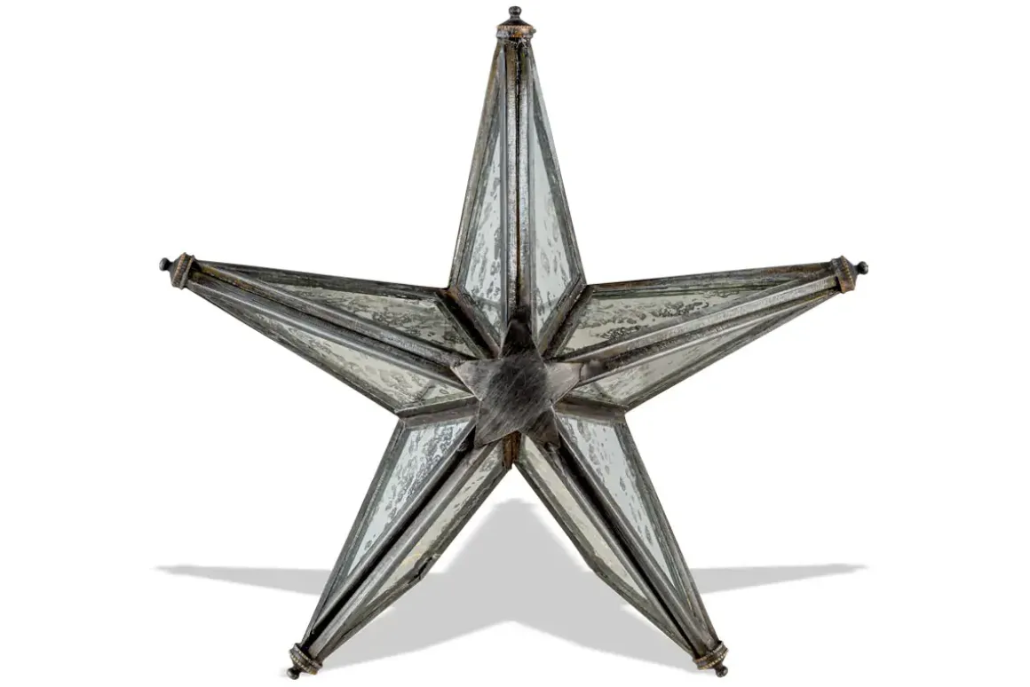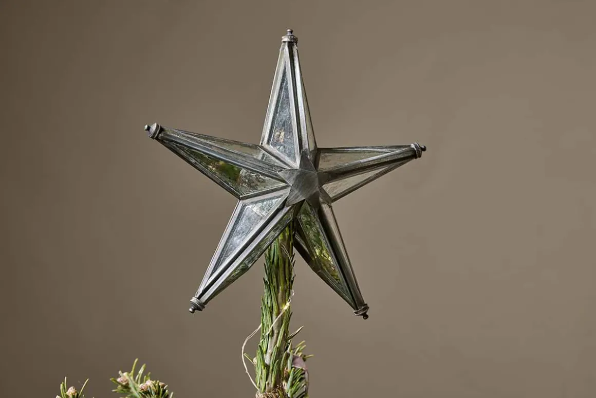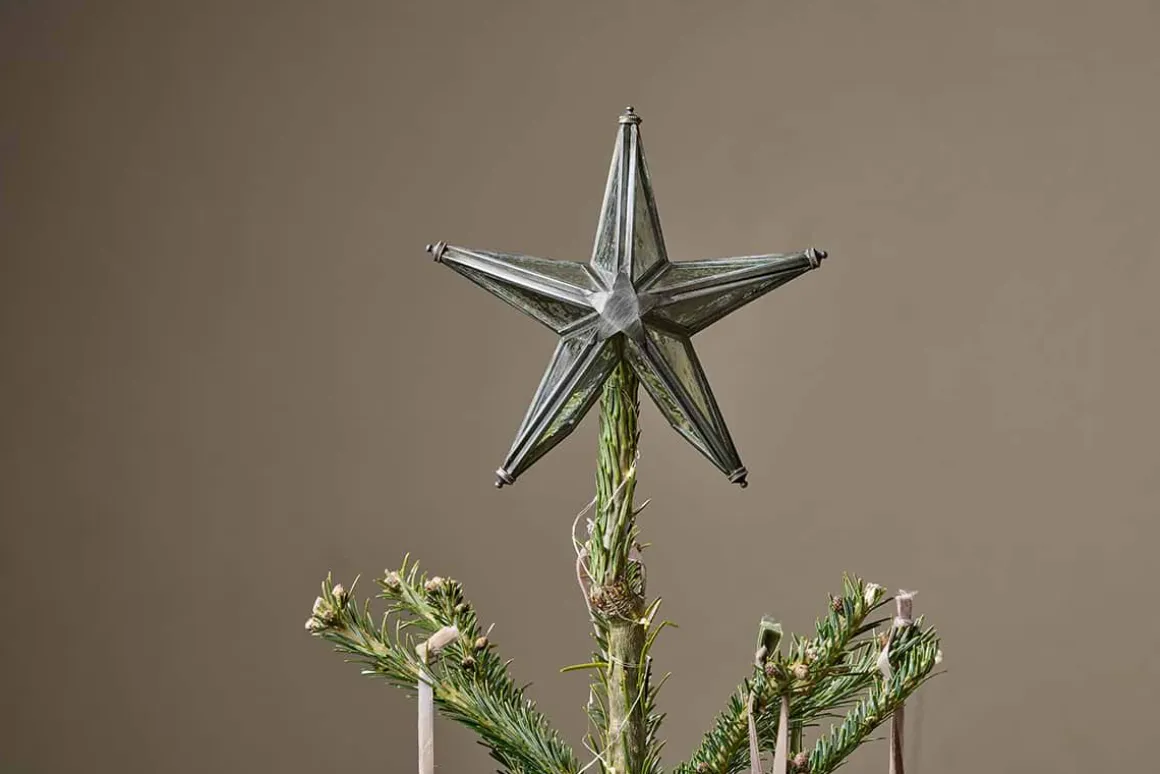 Our ever-popular Bakara Star Tree Topper returns with a new antique silver finish. Forged from brass, the intricate star design is inlaid with smoked mirrored glass, creating the sumptuous feel of a bygone era. This has to be one of the most elegant ways to top a tree and sets the stage for the rest of your tree dicor, whether you prefer a traditional, sophisticated or natural look.