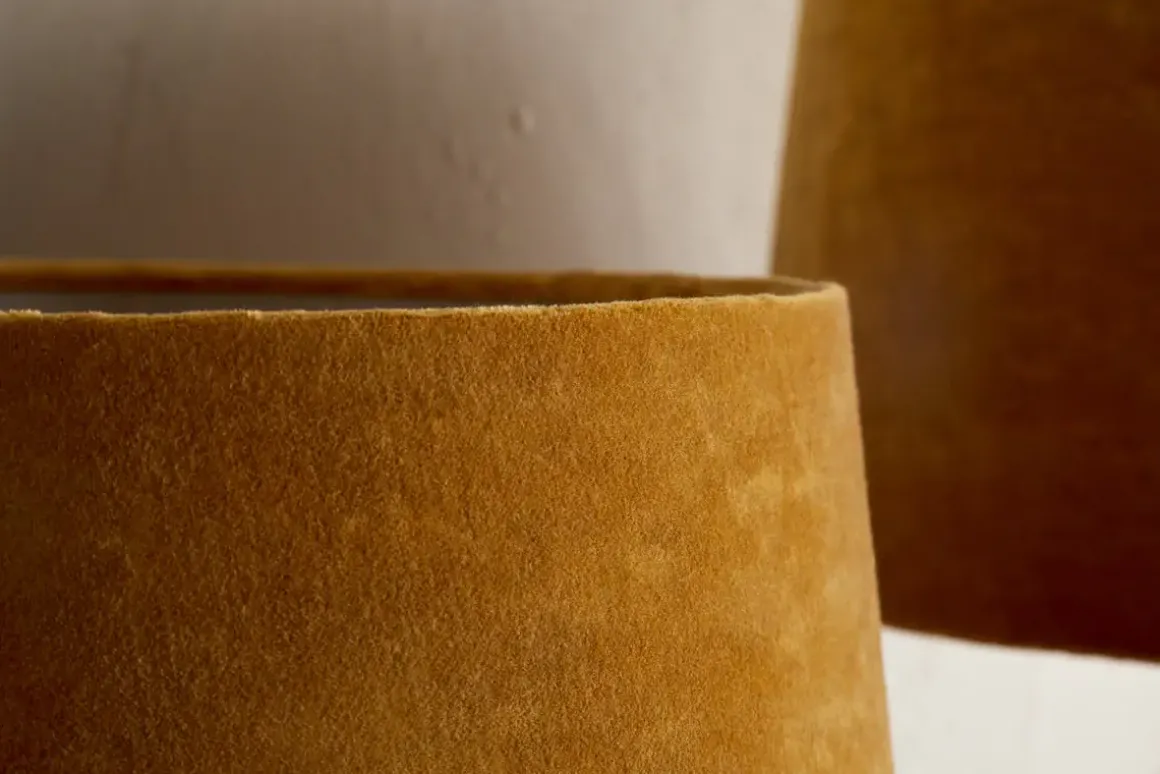 Batakha Velvet & Linen Lampshade – Dark Ochre