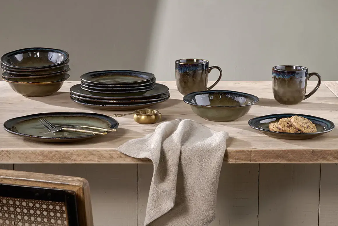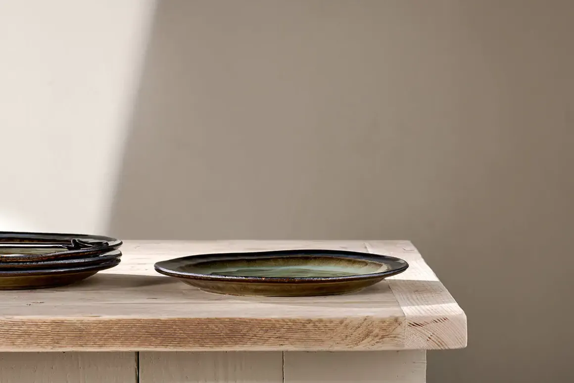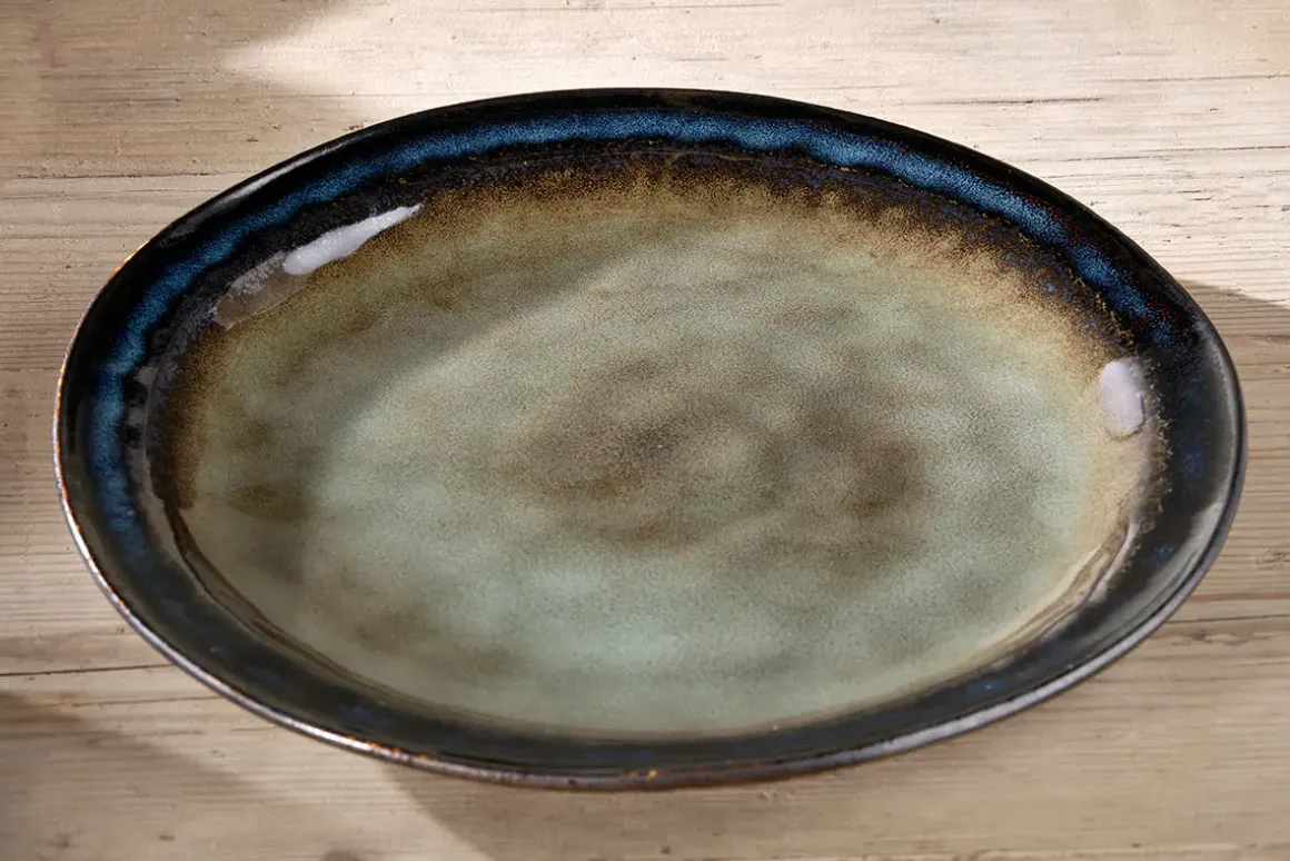 The classically simple design of these ceramic Cali dinner plates are given a rich, warm aesthetic with an eye-catching glaze that reacts in the kiln to bring out earthy bronze and rock-pool blue hues. Each piece is unique thanks to variations during the firing process. Perfect as everyday dinner plates for kitchen suppers, the striking colouring gives every serving a cafe-style lift. For a sophisticated table setting, style with the rest of the Cali collection.