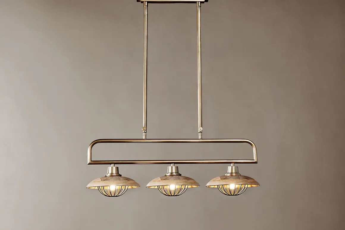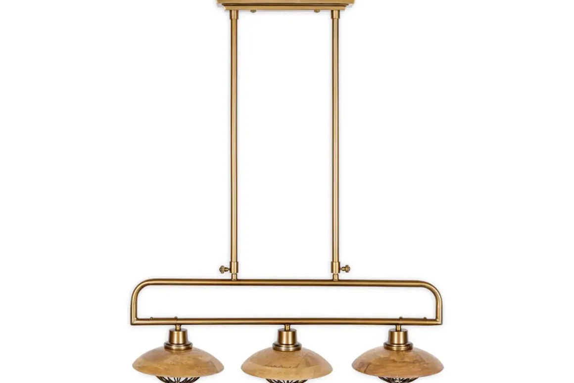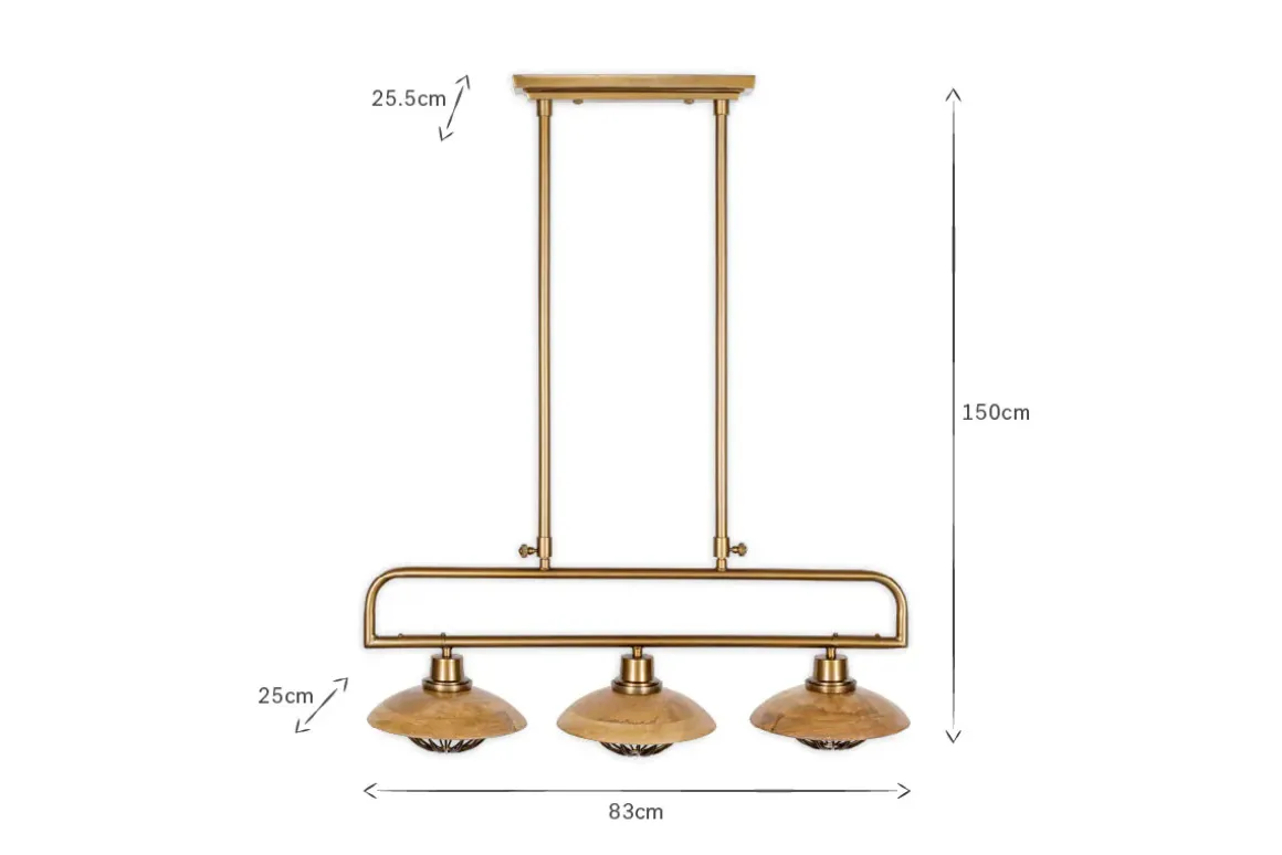 We’ve introduced this triple dinner pendant to our popular Chakai lighting collection as a dramatic statement piece sure to bring attention when positioned above a kitchen island, dining table or as a striking feature in a living room. It showcases two of our favourite materials: antique brass and sustainable mango wood, with the warm tones of the brass cage pairing beautifully with the natural grain of the wooden shade. Suspended on a solid frame, the height of the elegant Chakai dinner pendant is fully adjustable: lower to create a pool of light for a more intimate setting or raise to throw light further afield.