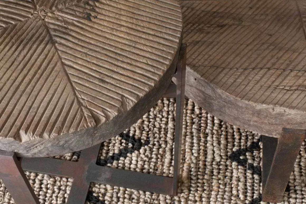 Our Chakala coffee tables are made from reclaimed wooden herb grinders, once a traditional feature of Indian everyday life. The chunky wood tabletop is rich with character and interest. The simple iron frame provides a stylish base.