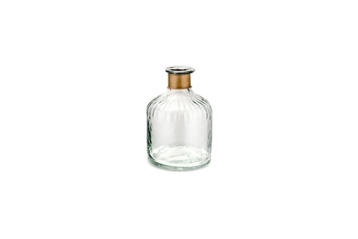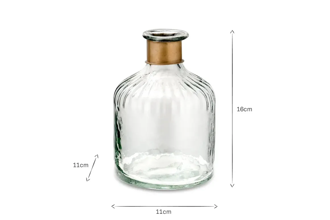 These elegant Chara bottles are decorated with a hammered glass finish and etched detail. The bottle is skilfully created by blowing glass through the brass ring in this stylish design.
