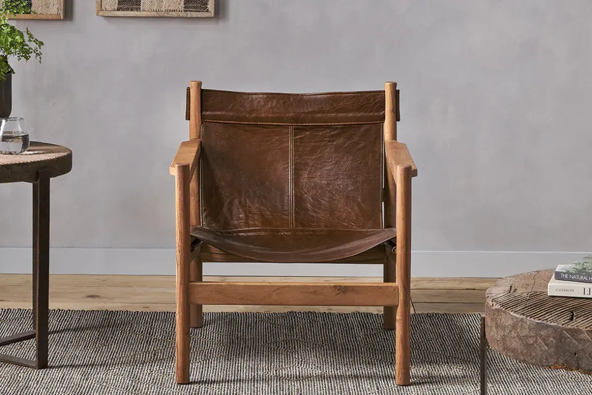 The tan buffalo leather of this Dalibar lounger pairs beautifully with the warm tones of the acacia wood frame. A relaxed aesthetic and simple, contemporary design with stylish details makes this a chair that fits into any living space with ease. Add it to a bedroom scheme or the corner of a sitting room for additional seating that is unassuming yet deeply comfortable. Buffalo leather is a natural byproduct and the hides are dyed using vegetables and tree bark to achieve rich, natural colours.