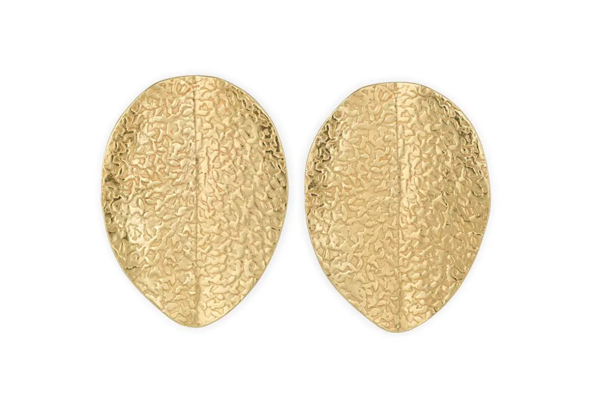 These oversized earrings are eye-catching chunky statement pieces that we are seeing as a growing trend in jewellery design. Our Darshana earrings are inspired by leaves and water droplets and have been handmade with our distinctive hammered gold plated finish, which highlights the craftsmanship that goes into each piece. Eye-catching yet understated, these are a versatile piece that sits well with our entire gold plated collection.