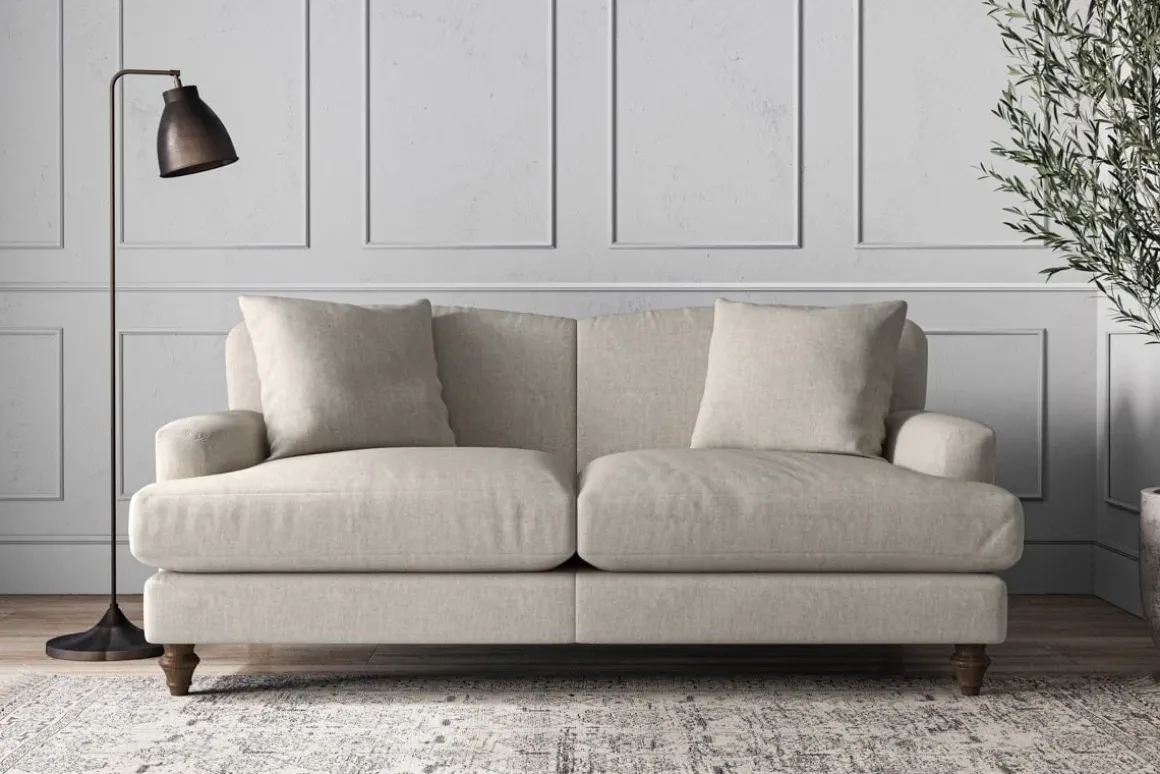Our Deni medium sofa is generously proportioned with deep, sumptuous seat cushions for luxurious comfort. Handcrafted from a solid hardwood frame with high-grade steel serpentine springs and foam and fibre wrap filling, this timeless collection celebrates the best of British quality and design. Fine details include in-built back cushions, hand-turned hardwood feet and two scatter cushions for added comfort.
