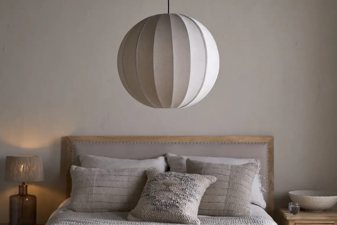 Our Dharini Linen lampshade is the epitome of softness, making it the perfect addition to your bedroom or cosy space. Designed for easy installation, it can be fitted to an existing pendant or used with our Otti pendant fitting, no electrician required. The textured linen beautifully diffuses light, creating a warm and inviting glow. This understated yet stunning shade makes an ideal bedroom light.