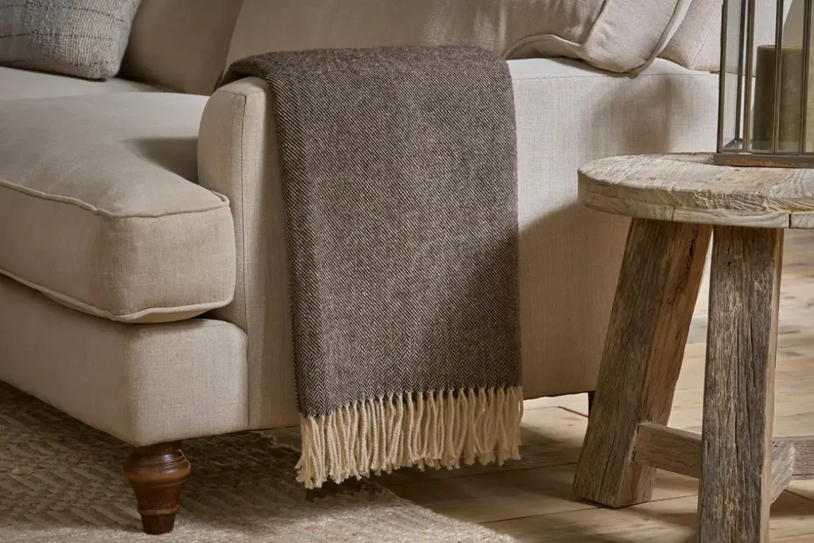 Lovingly made in Portugal from 100% wool, we’re delighted to add this Dilli Dark Brown Wool Throw to our collection. Delightfully soft and warm, it’s luxurious to wrap up in on a chilly evening. The gentle earthy dark brown tone is subtle and versatile, while the heritage herringbone style design adds classic elegance and texture to any space, whether folded, rolled or draped over a sofa. Pair with our Dilli cushion coversfor the perfect cosy night in.
