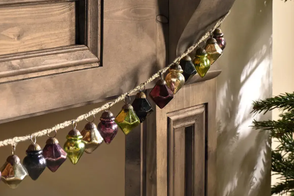These beautiful garlands are a Christmas essential; each pretty bauble is handmade from recycled glass and joined together with natural jute. Each garland is over a metre in length.